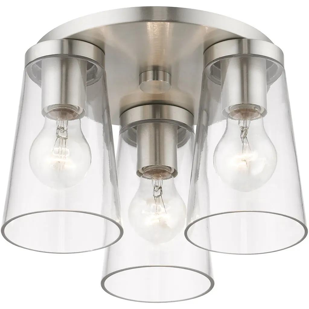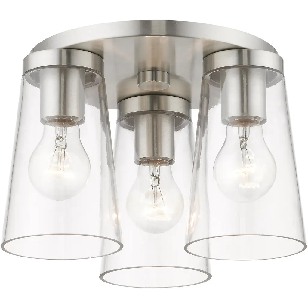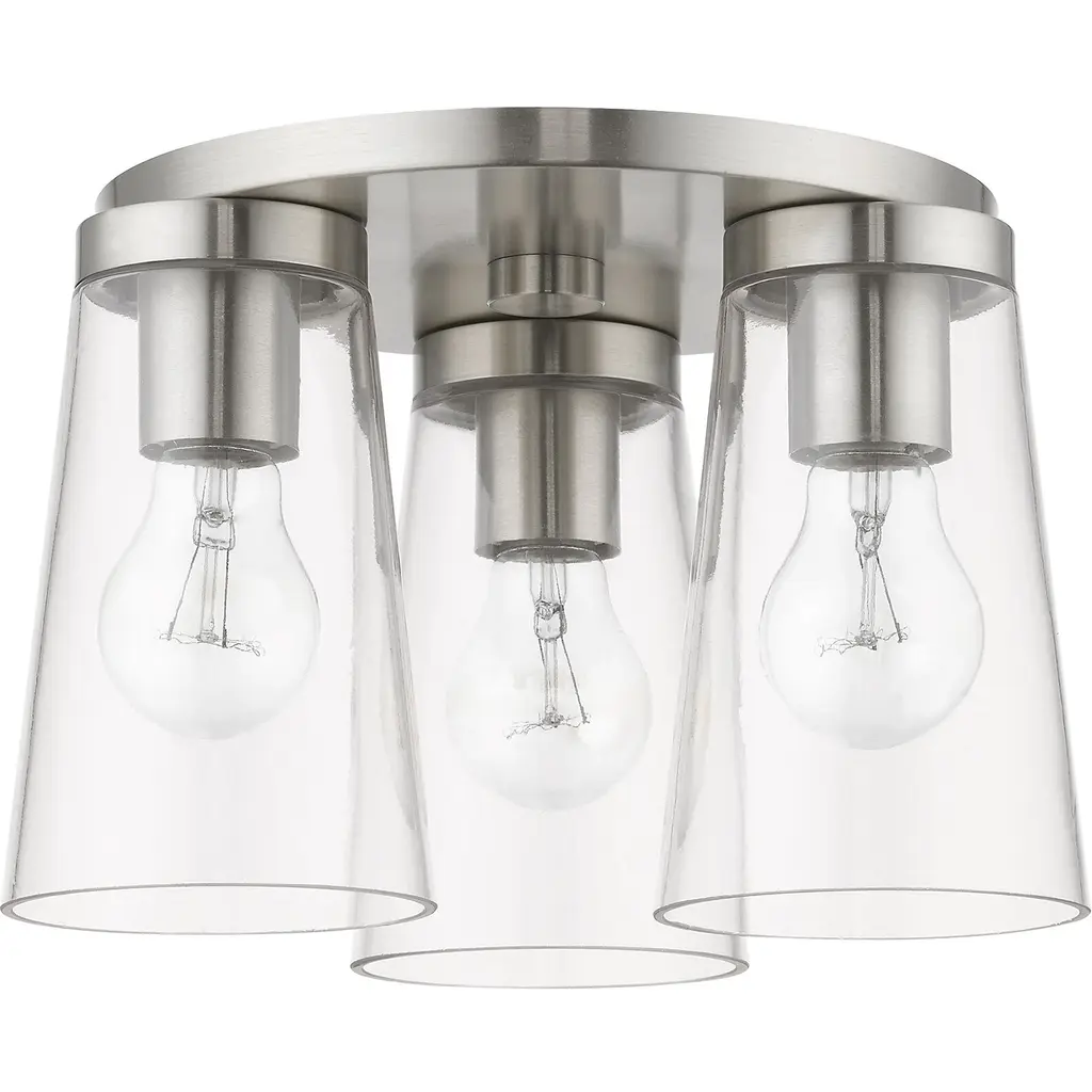 Cityview 3 Light 11 Inch Brushed Nickel Flush Mount Ceiling Light, Large