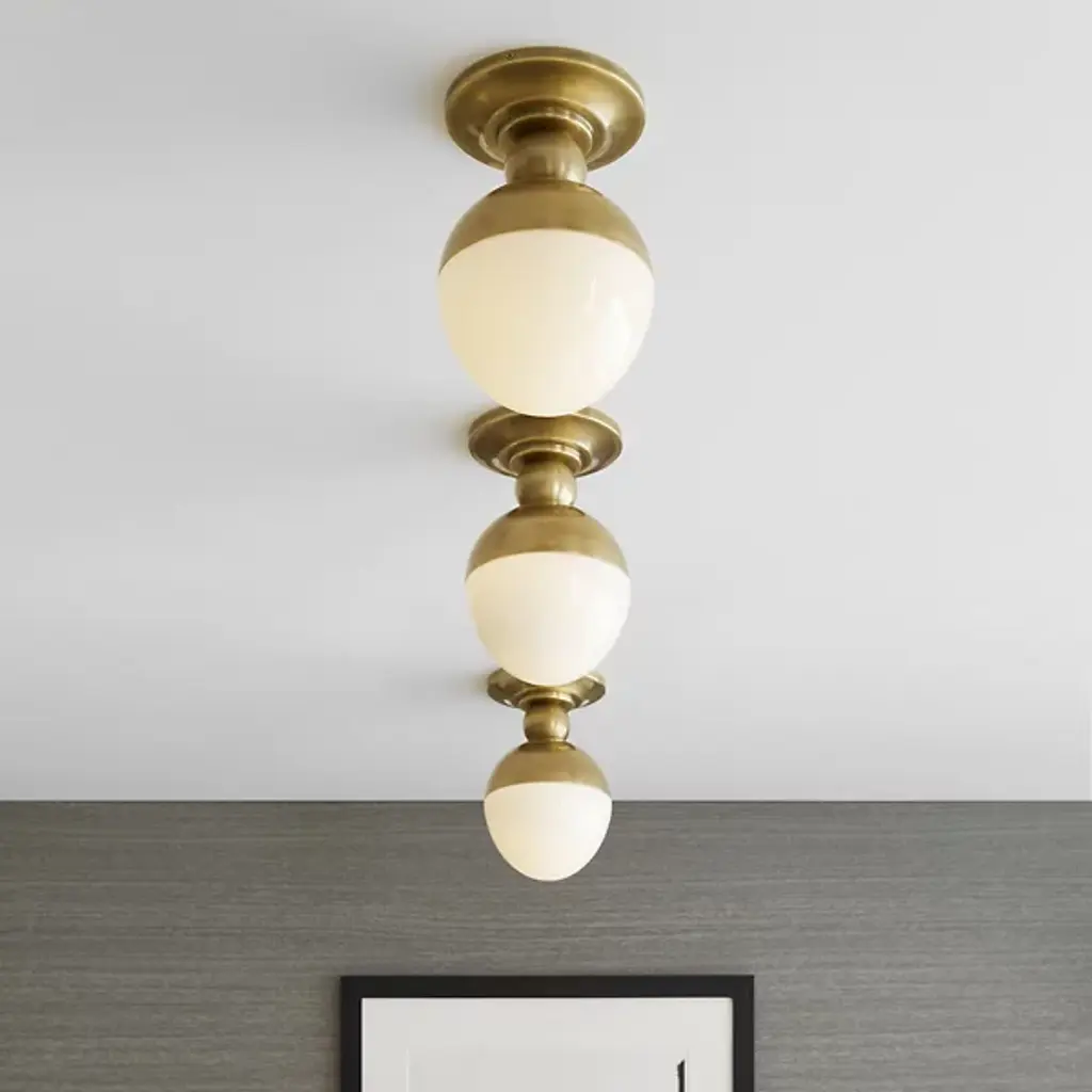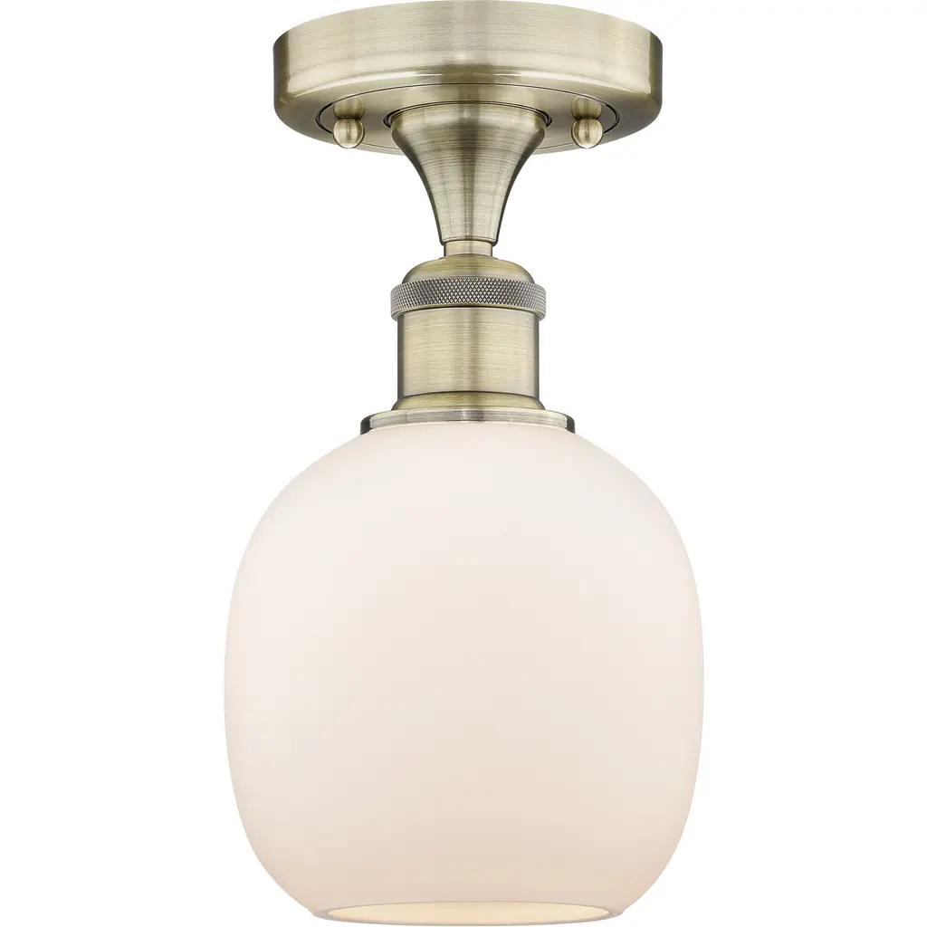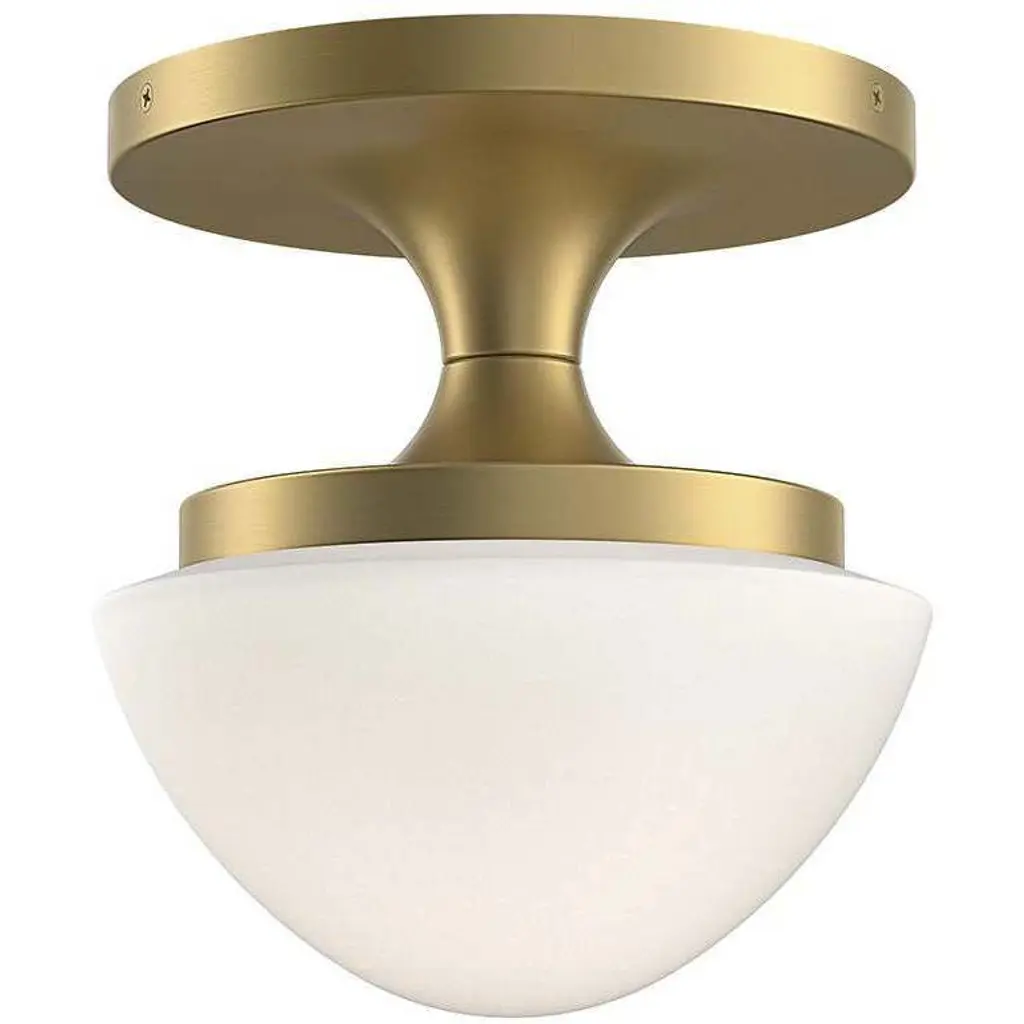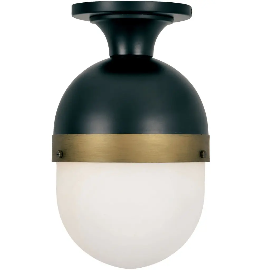The Clark Flushmount by Visual Comfort Signature, formerly known as Visual Comfort, will bring refined and subtle style to any room. A detailed, round ceiling canopy leads to a split shade of brass and White glass. This glass smoothly distributes ambient light to the surrounding area. Dimmable with an ELV dimmer (not included). Designed by Thomas O’Brien.