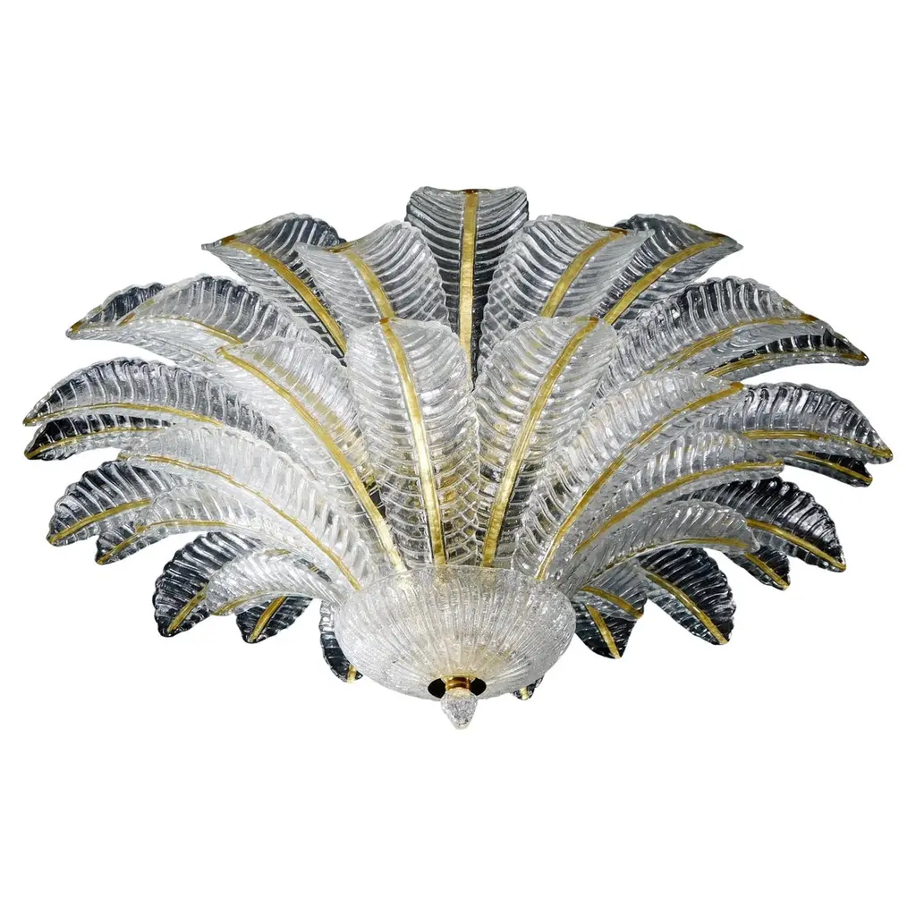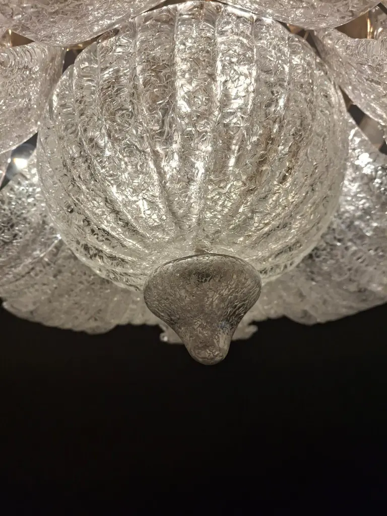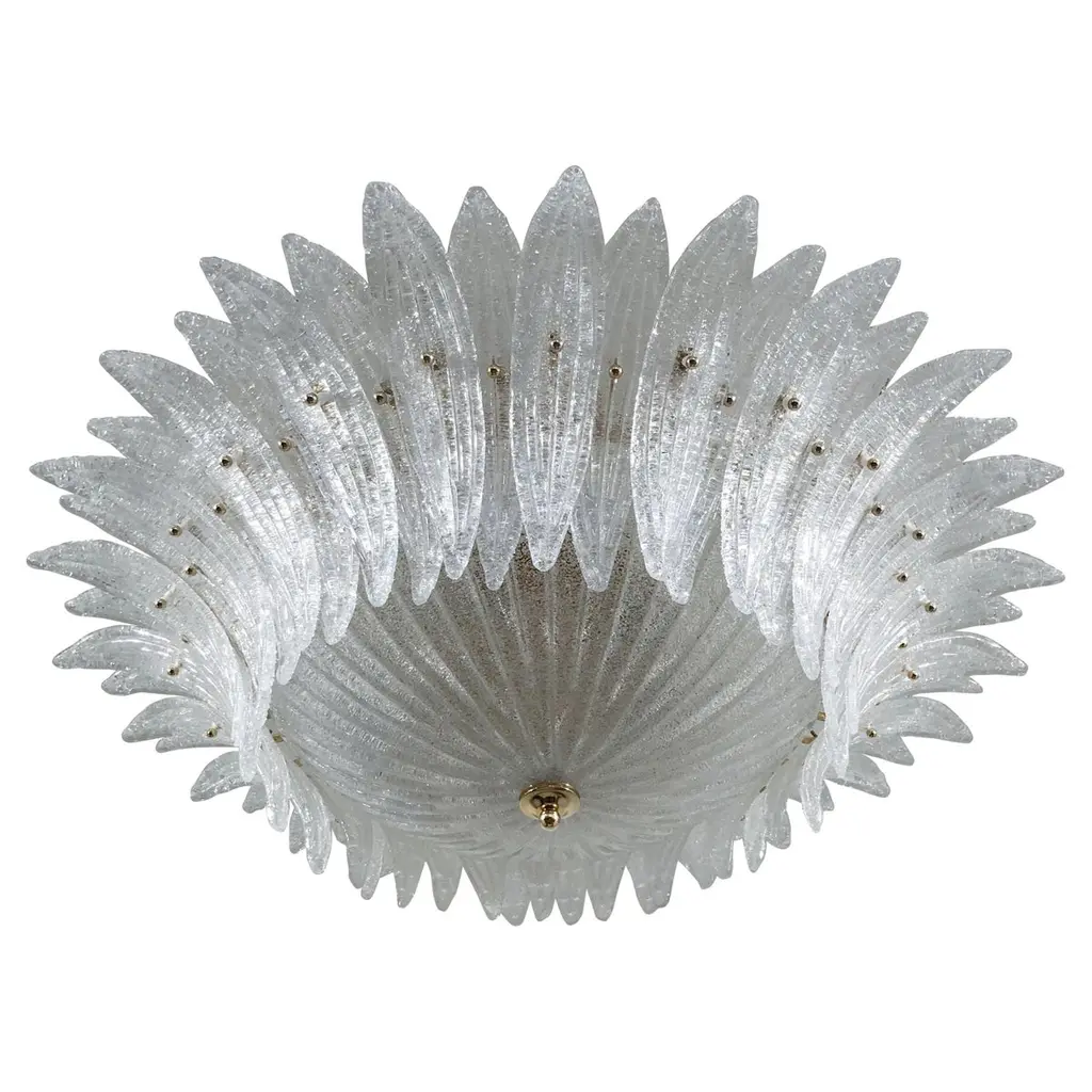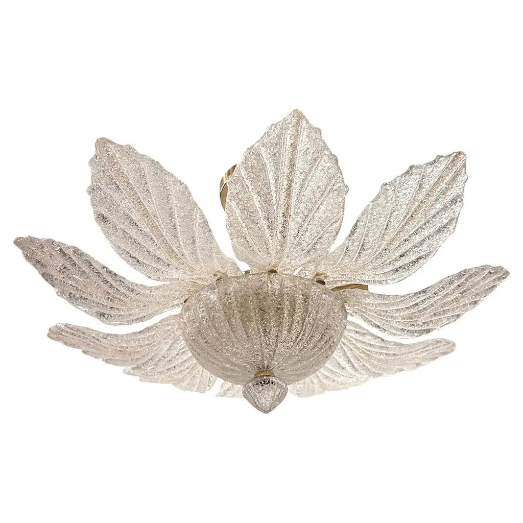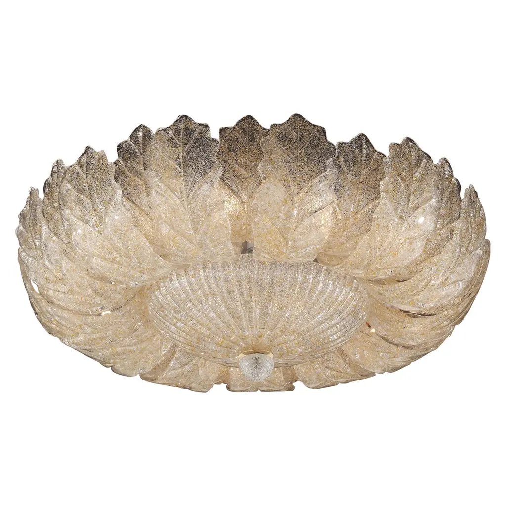 Vintage Italian Murano glass flush mount with clear graniglia glass leaves mounted on gold metal frame / Made in Italy in the style of Barovier e Toso, circa 1960s11 lights / E12 or E14 type / max 40W eachMeasures: Diameter 25.5 inches, height 14 inches2 available in stock in Italy, price listed is for each itemOrder reference #: FABIOLTD K121