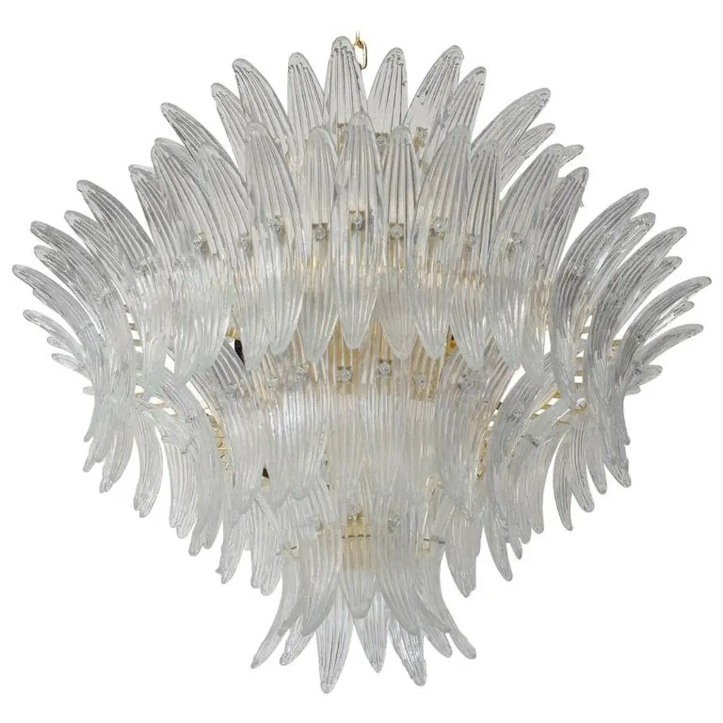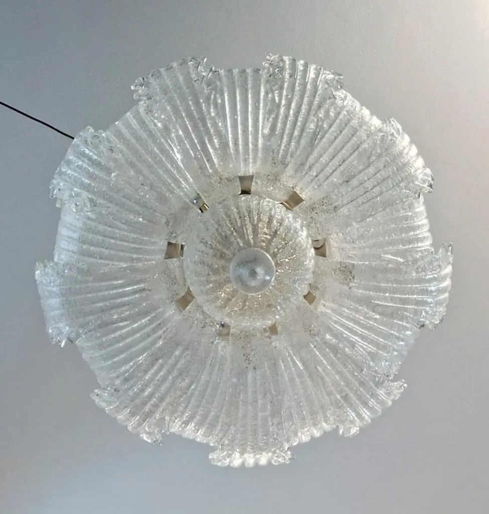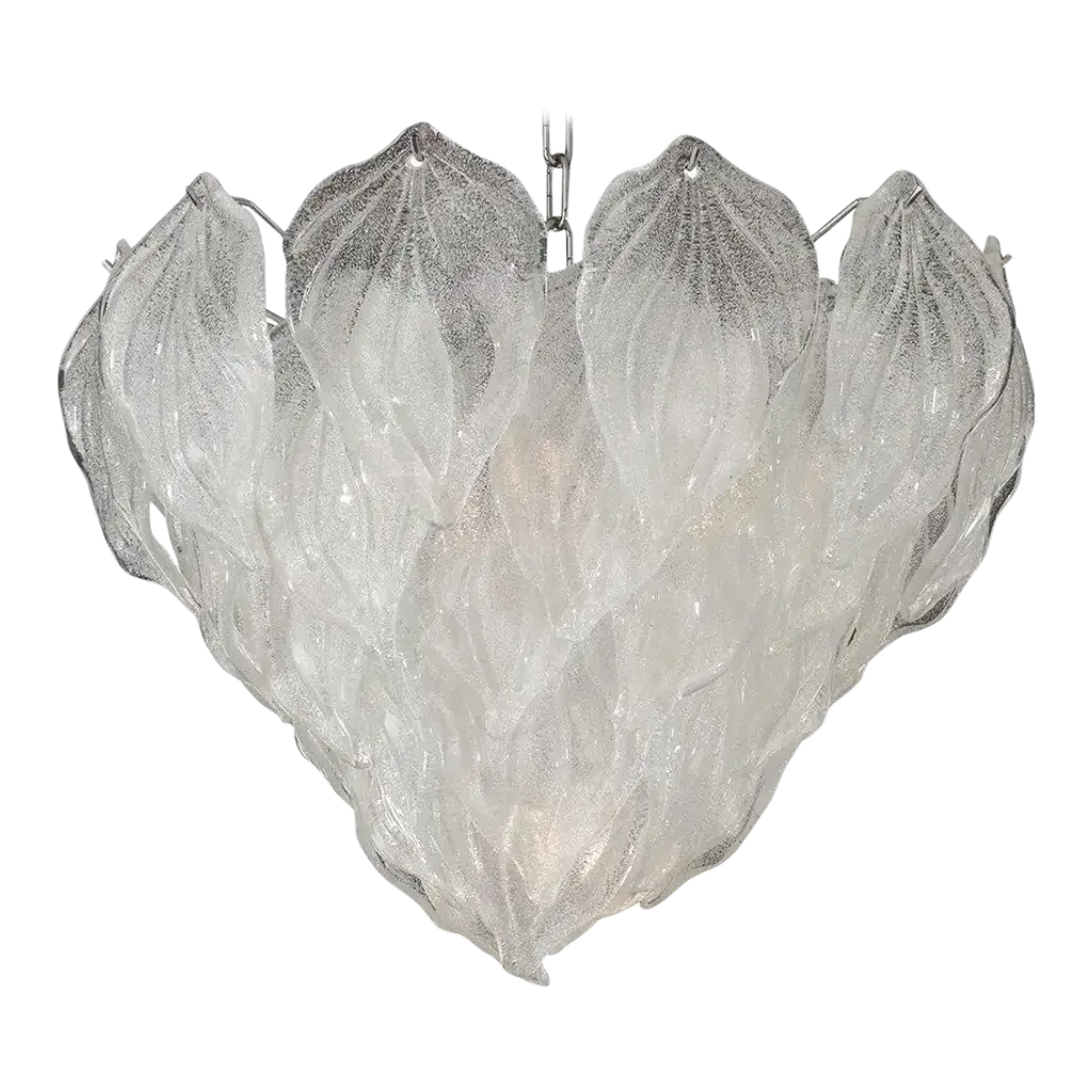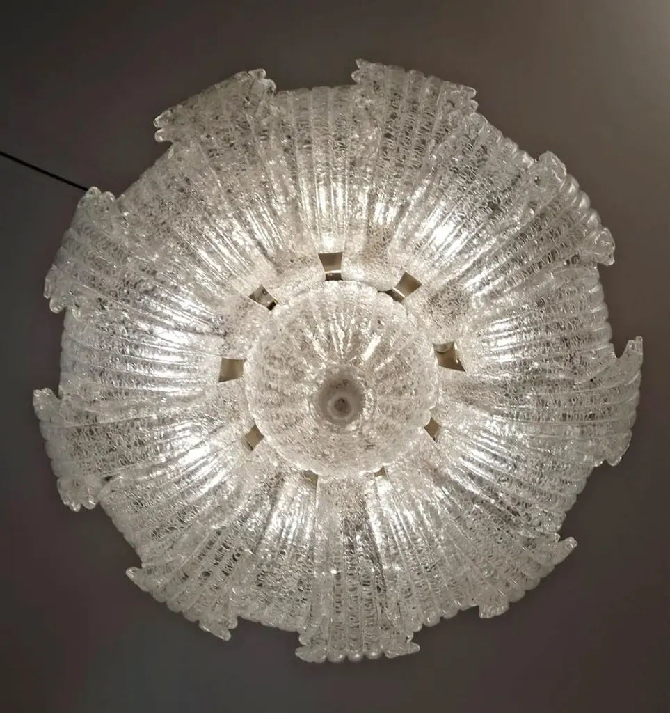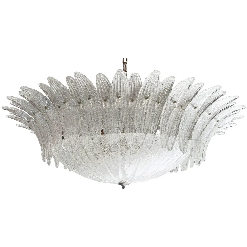 Vintage Italian Murano glass flush mount with clear graniglia glass leaves mounted on gold metal frame / Made in Italy in the style of Barovier e Toso, circa 1960s11 lights / E12 or E14 type / max 40W eachMeasures: Diameter 25.5 inches, height 14 inches2 available in stock in Italy, price listed is for each itemOrder reference #: FABIOLTD K121