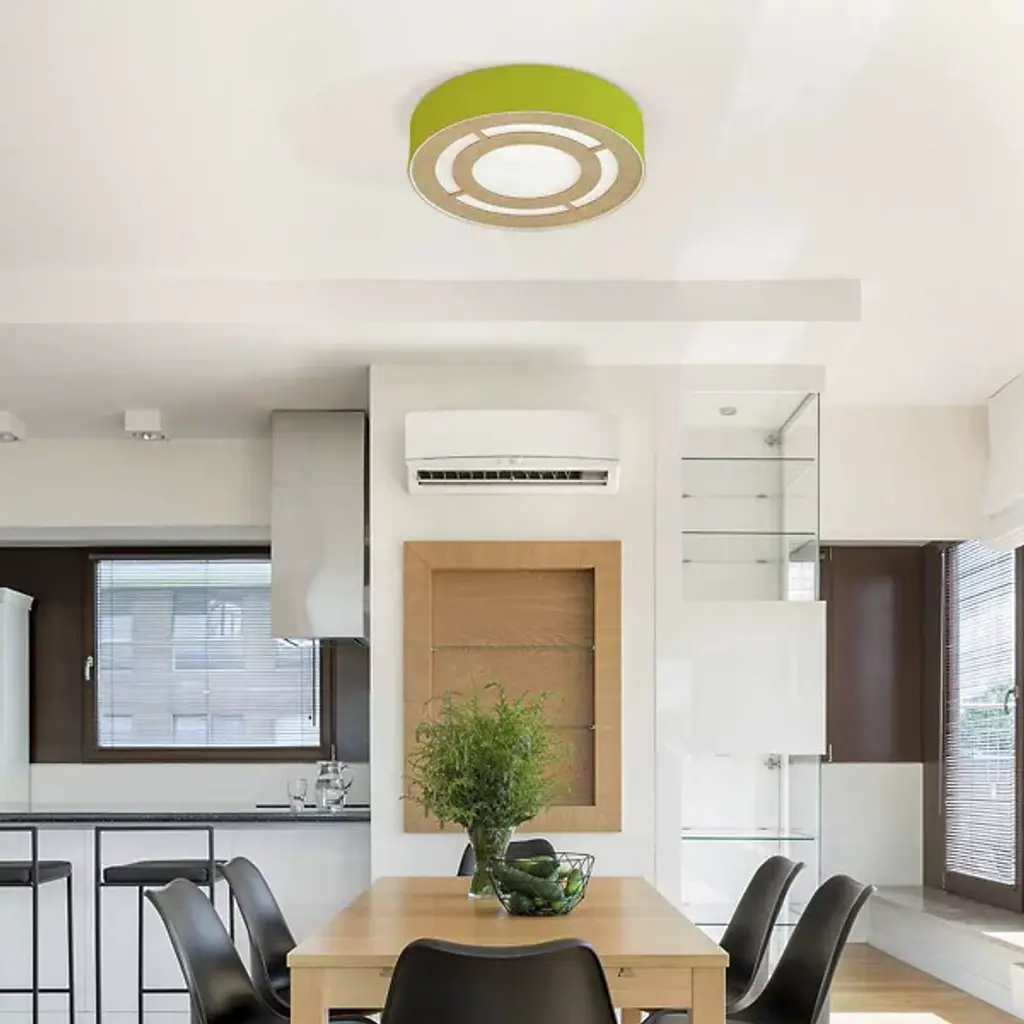 Add a bright and smart visual to your room with the Cloie LED Flushmount from Seascape Lamps. The piece makes its presence known across a range of spaces thanks to a low-profile design. The short drum piece comes through with a soft note. Fitted below, a birch wood diffuser creates eye-catching contrast as a warm-hue and texture-filled material. The dashing modern piece turns on with a brilliant LED module. The piece creates a spacious glow that softens up through the fabric and birch wood.