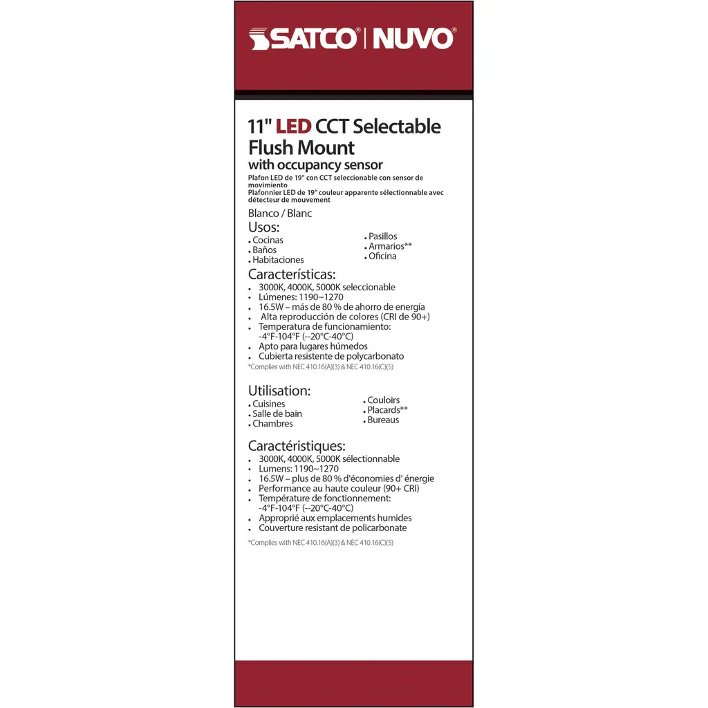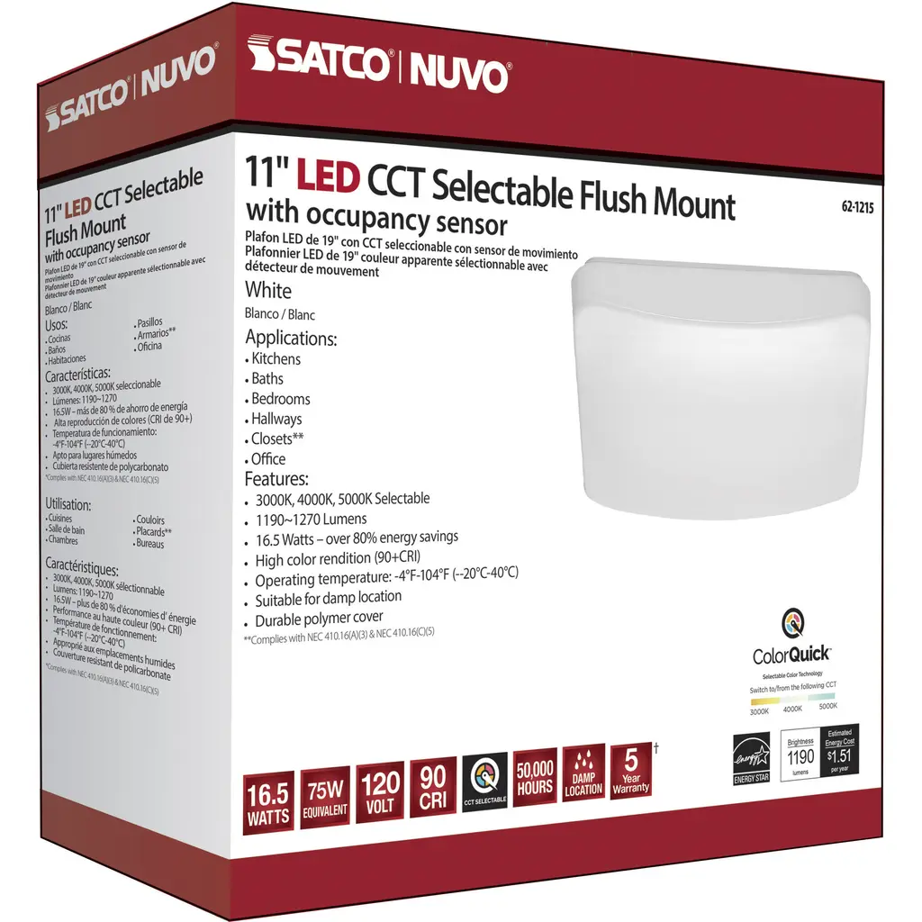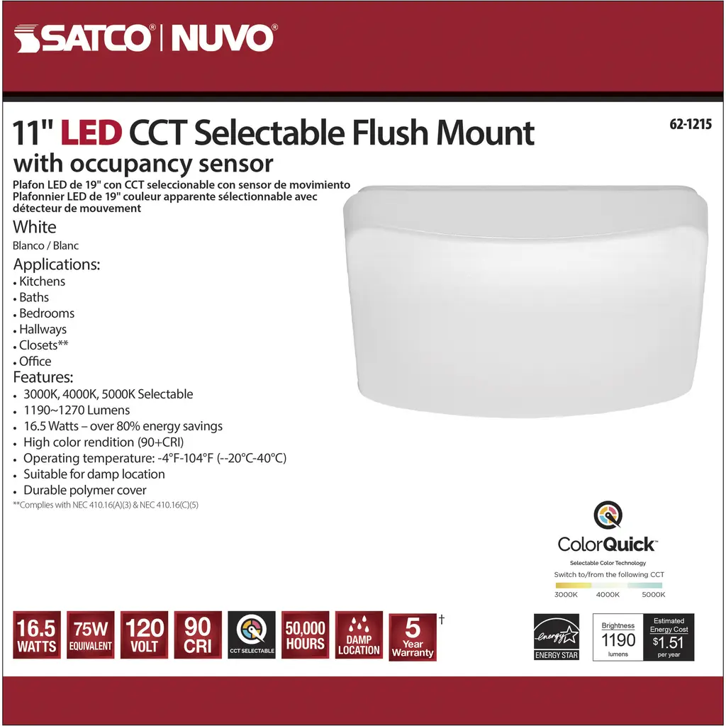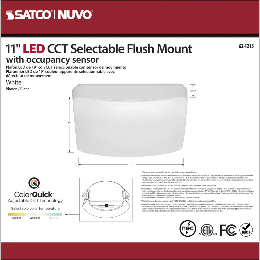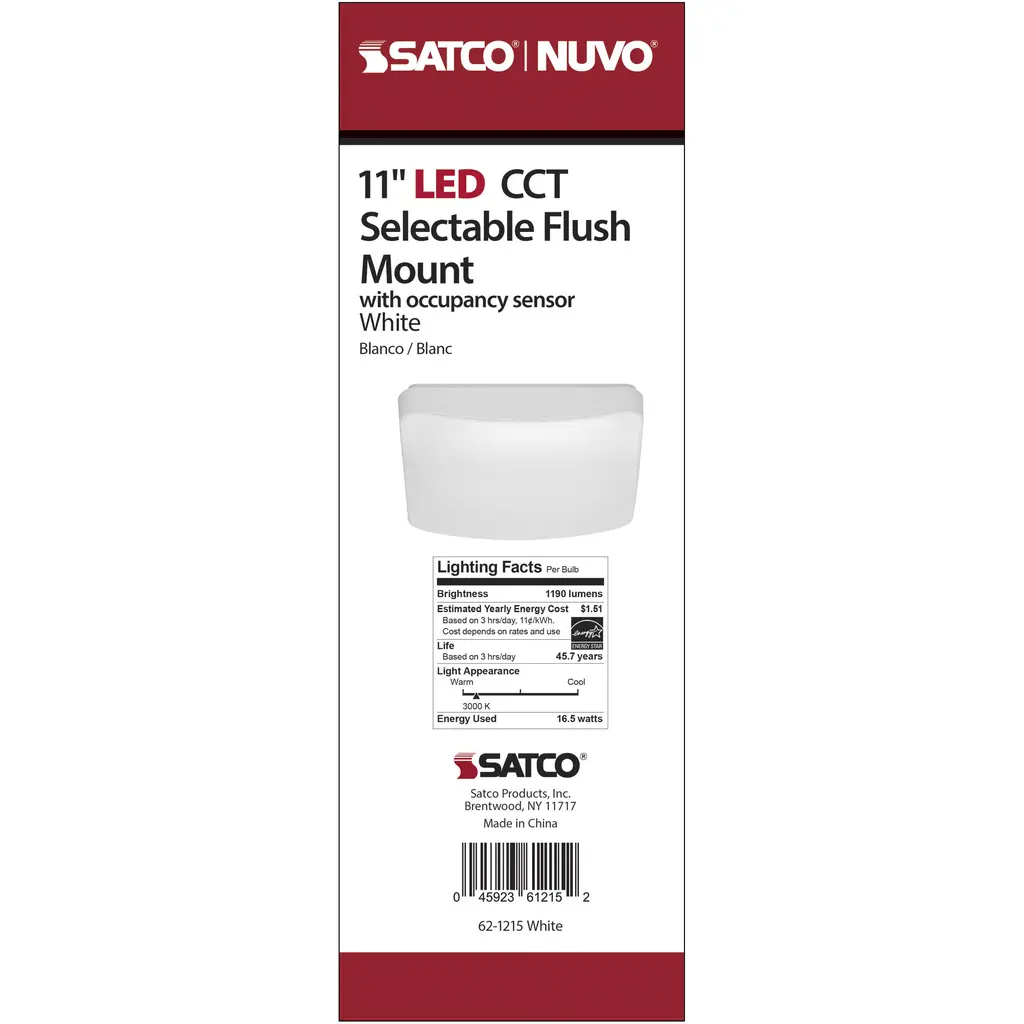 11 Inch Flush Mounted LED Fixture - CCT Selectable - Square - White Acrylic - with Sensor