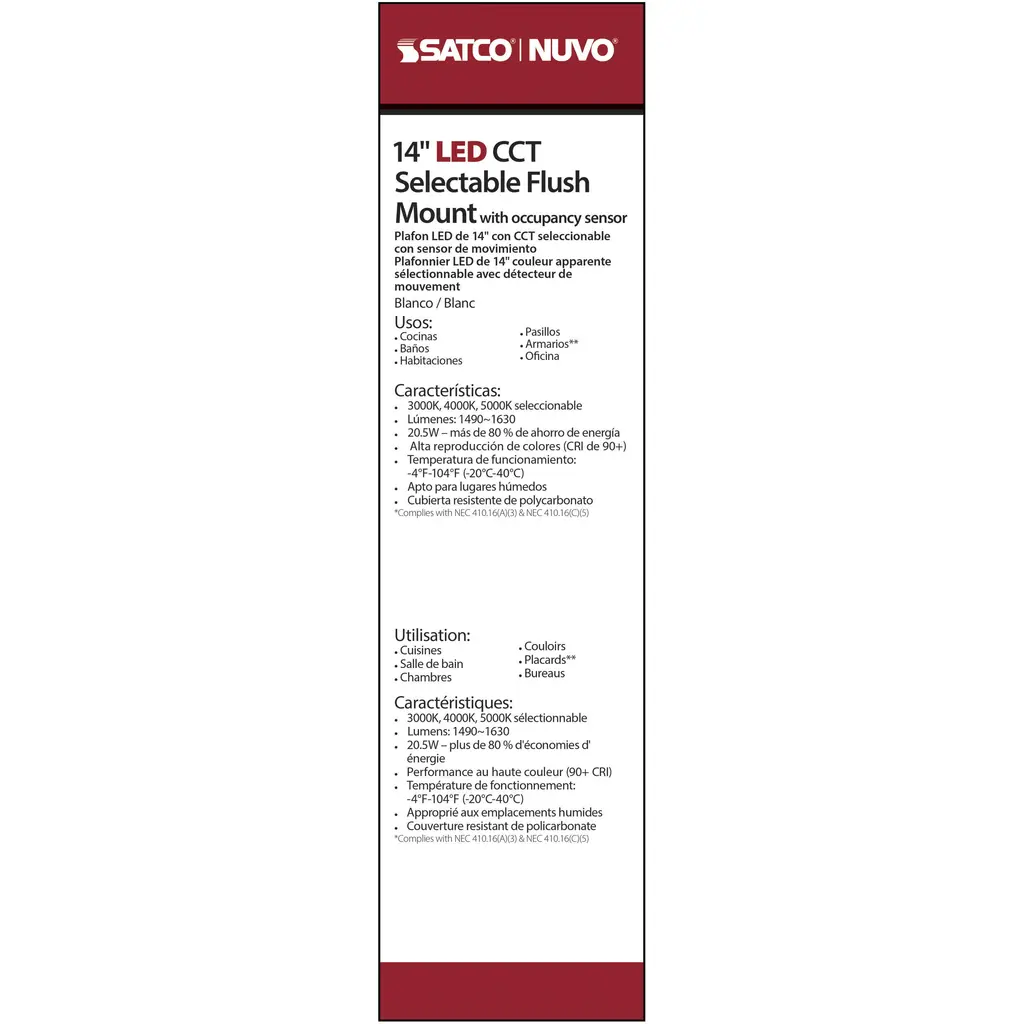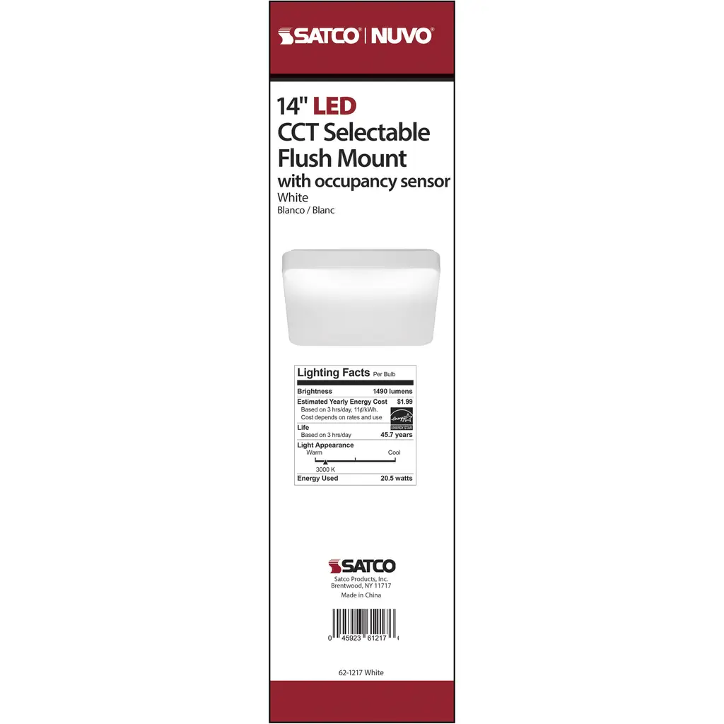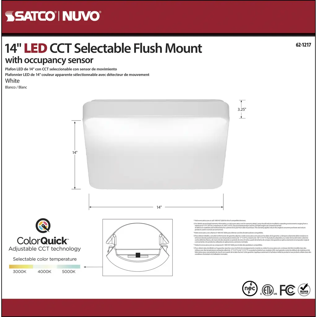 14 Inch Flush Mounted LED Fixture - CCT Selectable - Square - White Acrylic - with Sensor
