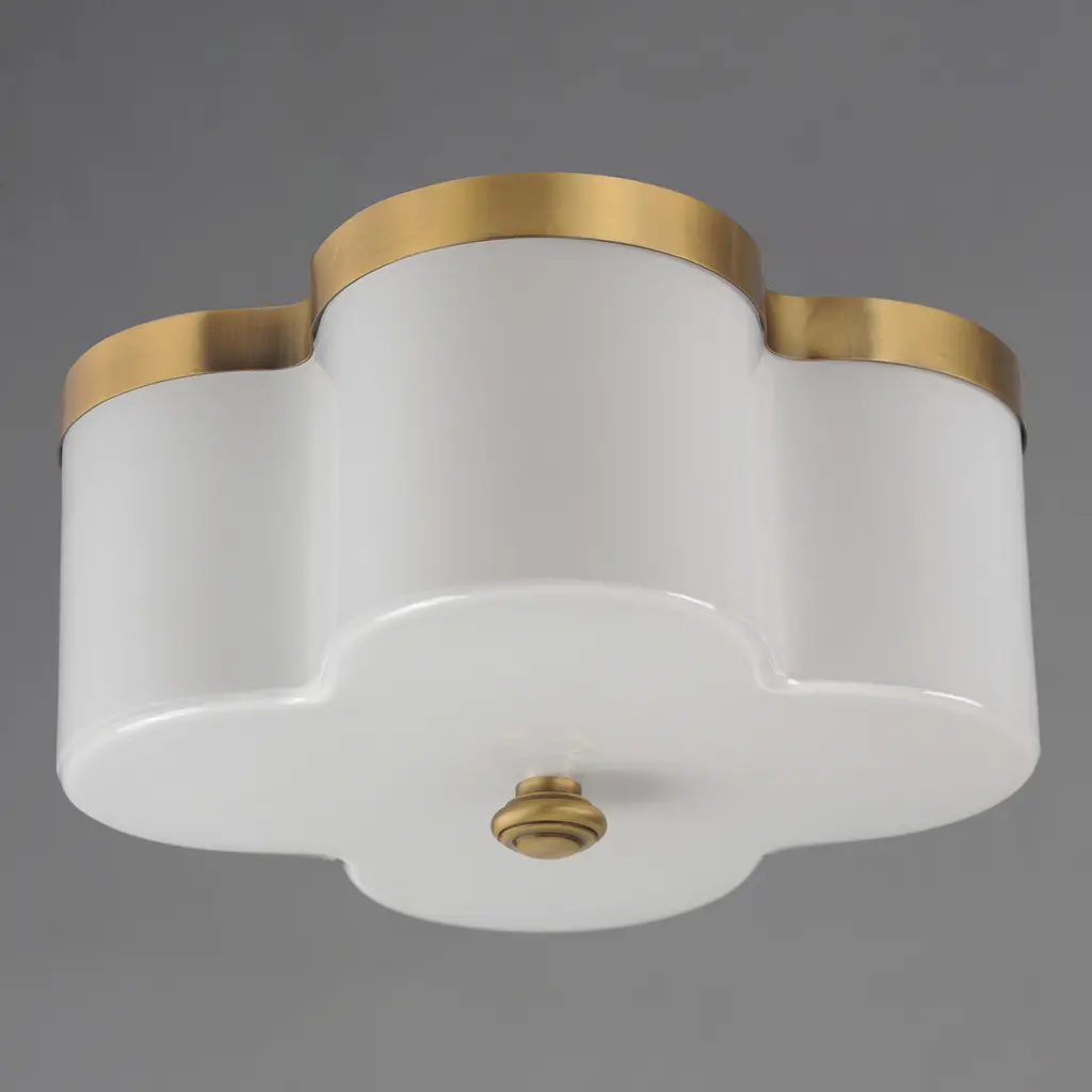 Honoring the traditional scalloped shade design in a range of materials, flush mounts are available in your choice of fabric, metal, or glass shades. The fabric shade features an Off-White linen fabric and is accented with Aged Brass metalwork. In the glass iteration, opal white glass features glossy elegant appeal with metal accents in Natural Aged Brass or Dark Bronze. The final iteration of metal shades has a white glass diffuser and metalwork finished in Polished Nickel or Natural Aged Brass.