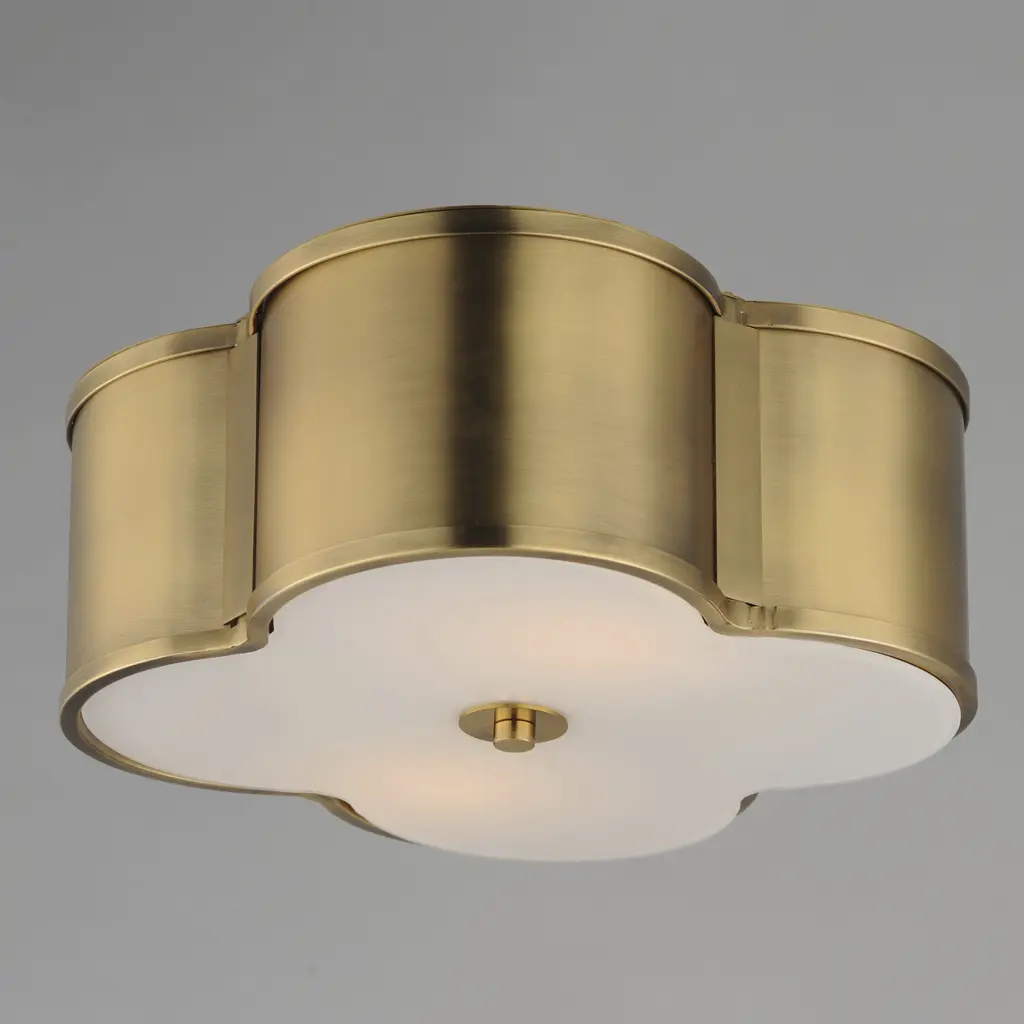 Clover 2 Light 14 Inch Natural Aged Brass Flush Mount Ceiling Light