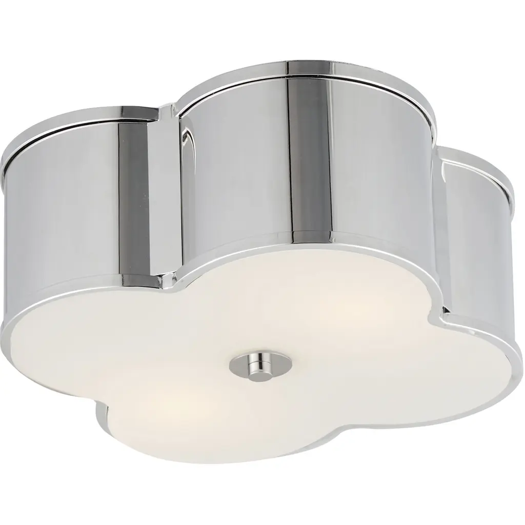 Honoring the traditional scalloped shade design in a range of materials, flush mounts are available in your choice of fabric, metal, or glass shades. The fabric shade features an Off-White linen fabric and is accented with Aged Brass metalwork. In the glass iteration, opal white glass features glossy elegant appeal with metal accents in Natural Aged Brass or Dark Bronze. The final iteration of metal shades has a white glass diffuser and metalwork finished in Polished Nickel or Natural Aged Brass.