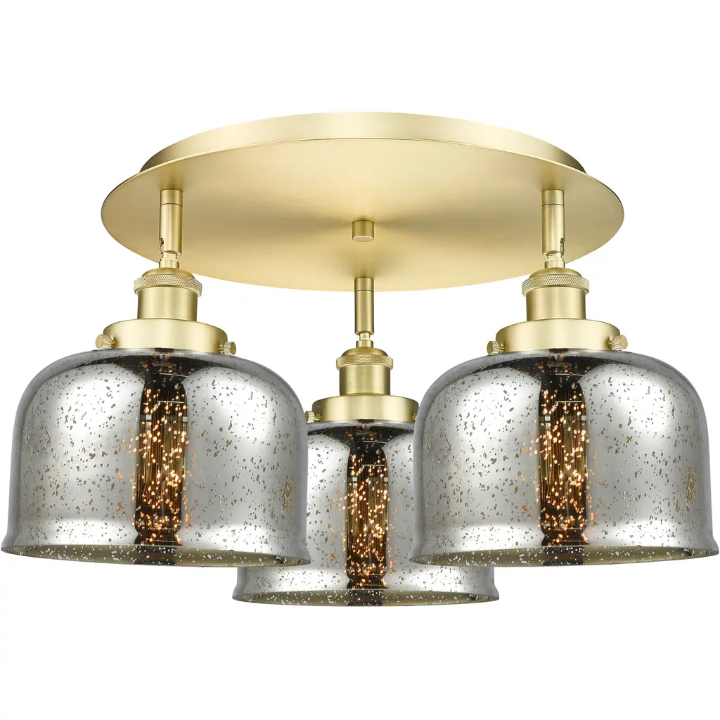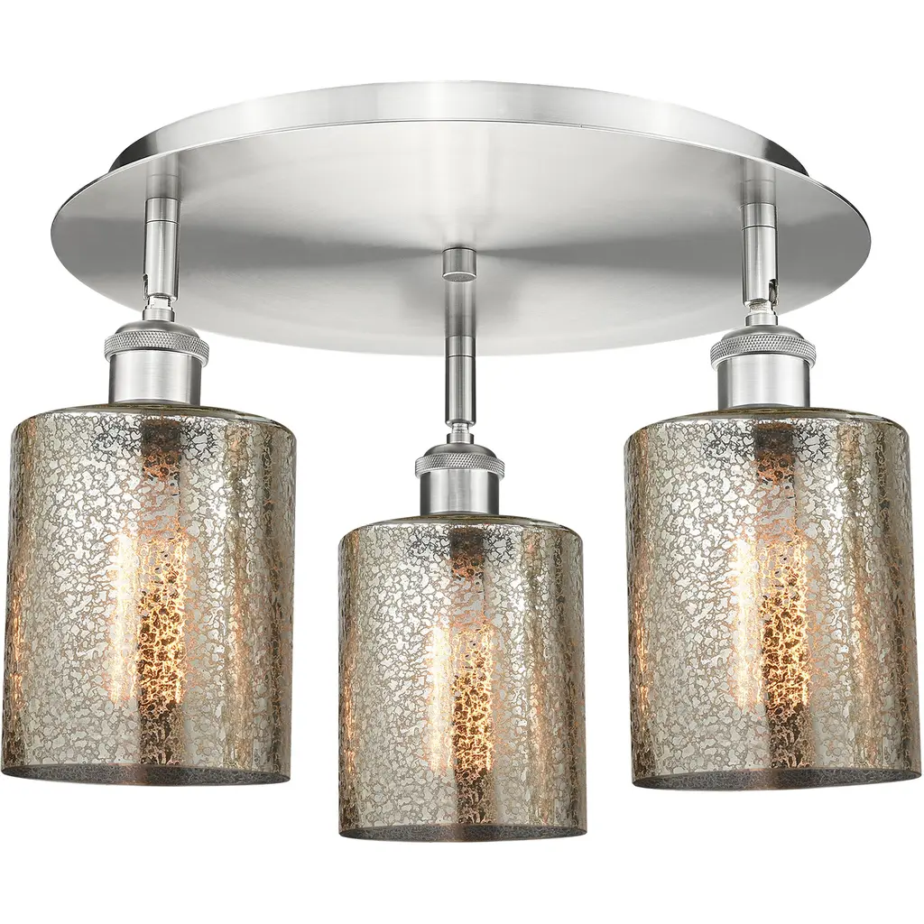 Cobbleskill - 3 Light 17" Flush Mount - Antique Copper Finish - Mercury Glass Shade