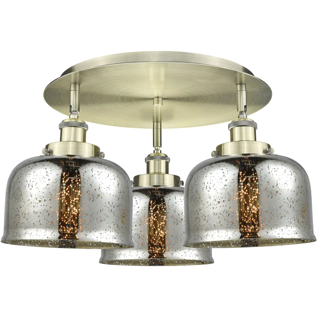 Cobbleskill - 3 Light 17" Flush Mount - Polished Nickel Finish - Mercury Glass Shade