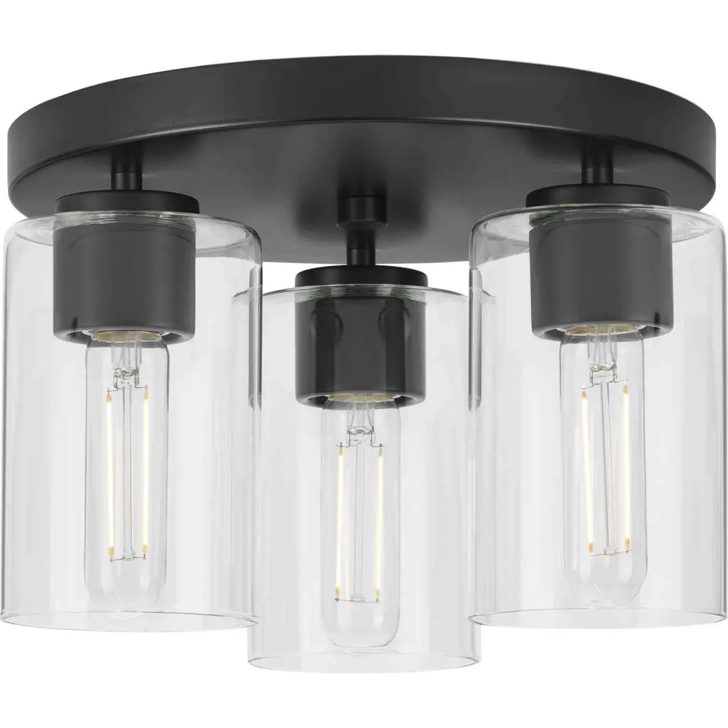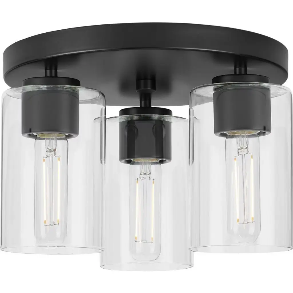 The Cofield Flush Mount features a slender, clean design that showcases understated elegance. A simple round canopy suspends cylindrical glass shades, providing contemporary style to mid-century modern and transitional settings, delivering ambient illumination to hallways, foyers, bedrooms and laundry rooms.