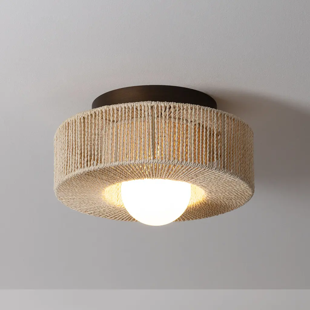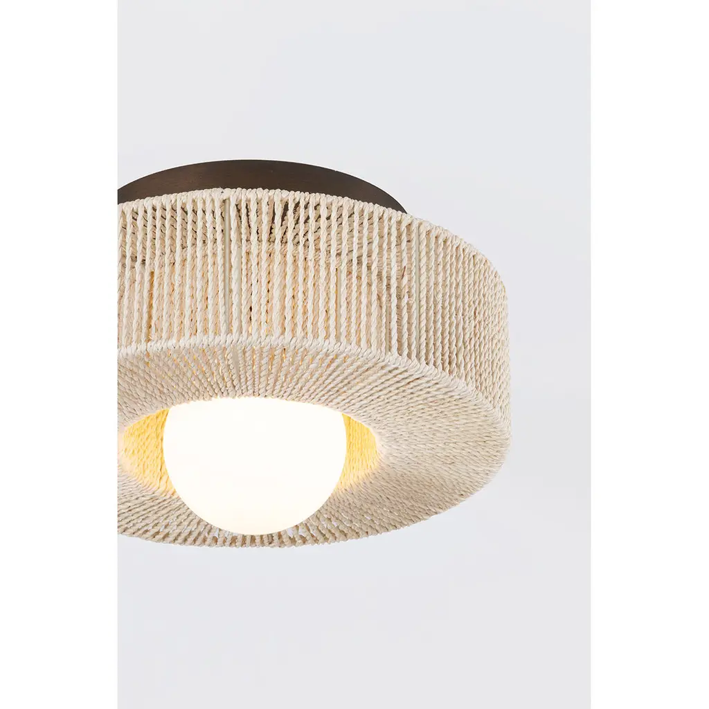 An expression of substantial geometry with lightweight materiality, Coleman features a dimensional, Abaca string-wrapped frame that resembles a vintage carousel. The inside of the shade is densely wrapped, while the outside has a more sparse distribution, creating a sense of visual dynamism that is enhanced when lit. The Bronze Leaf finish of the mount carries through the antique aesthetic while balancing the lightness of the bleached strings.*Due to the one-of-a-kind nature of the medium, exact colors and patterns may vary slightly from the image shown.