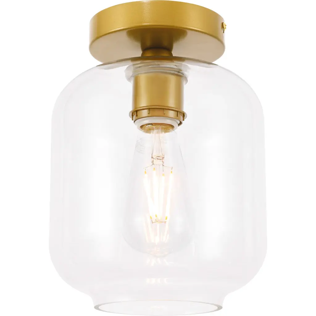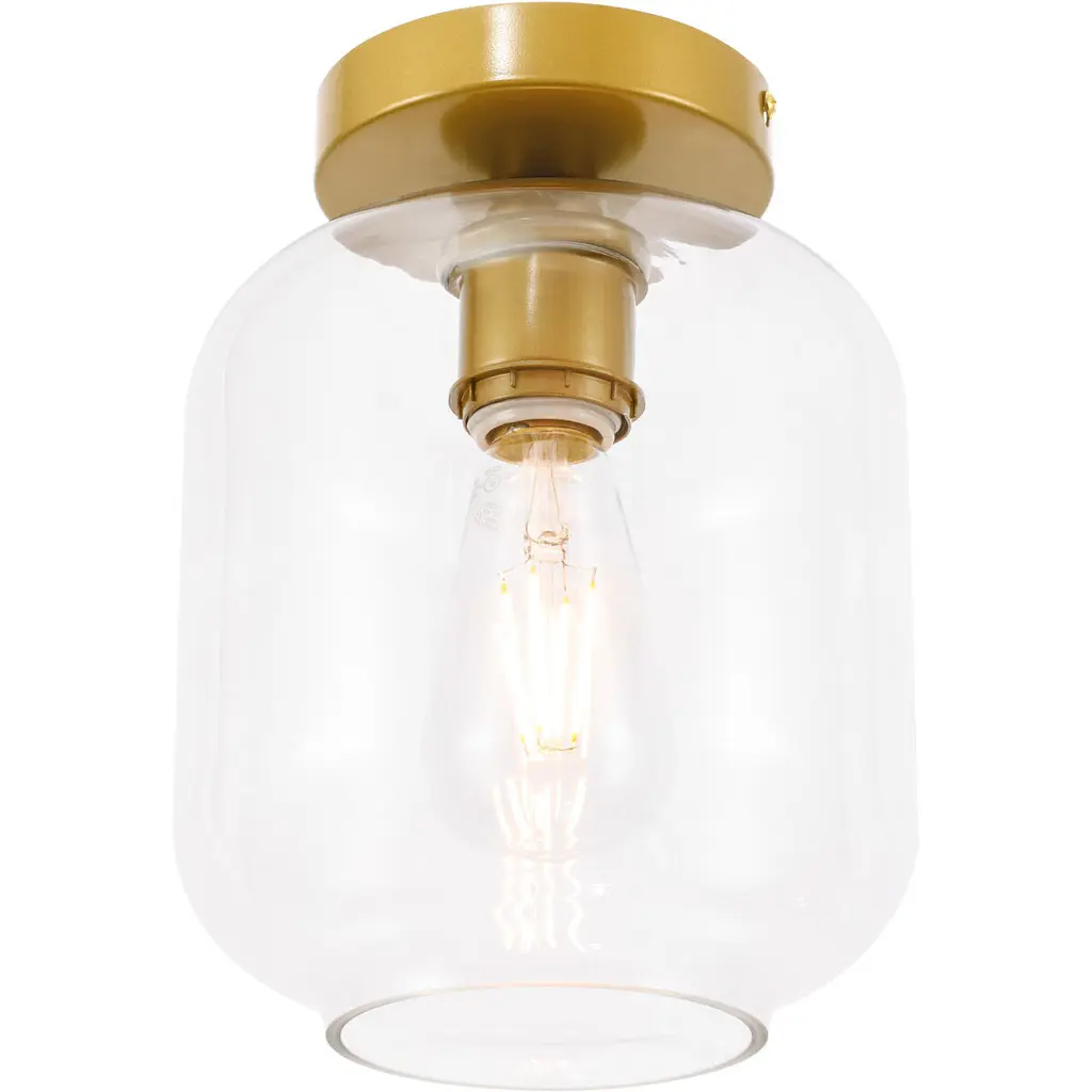 The Collier Collection of lights will be sure to have your guests admire your modern sense of style with the beautiful simplicity of its shape and form. This flush mount allows brilliant illumination to shine and radiate, allowing for your room to be center stage, and despite its minimalism, its design is far from boring--available in a brass, chrome, or black finish, with either a clear or frosted cylinder glass shade. The sleek organic curves of the mount and the cylinder that encapsulates the bulb will enhance your bathroom, foyer, or hallways, allowing for you to always live a chic and fashionable lifestyle, no matter where you are (light bulbs not included).