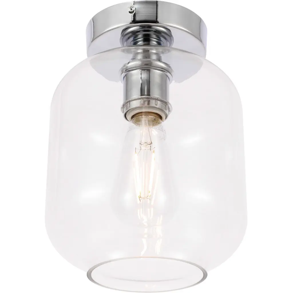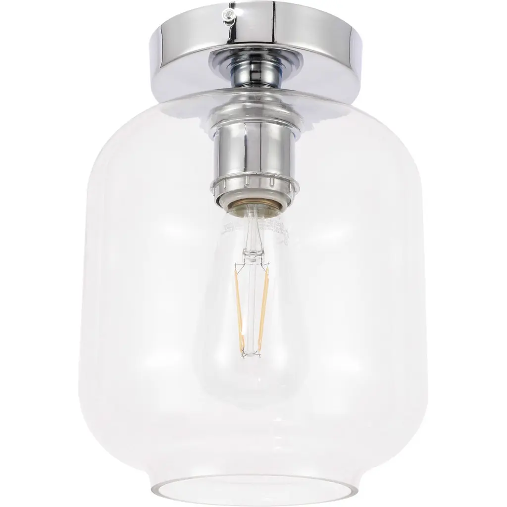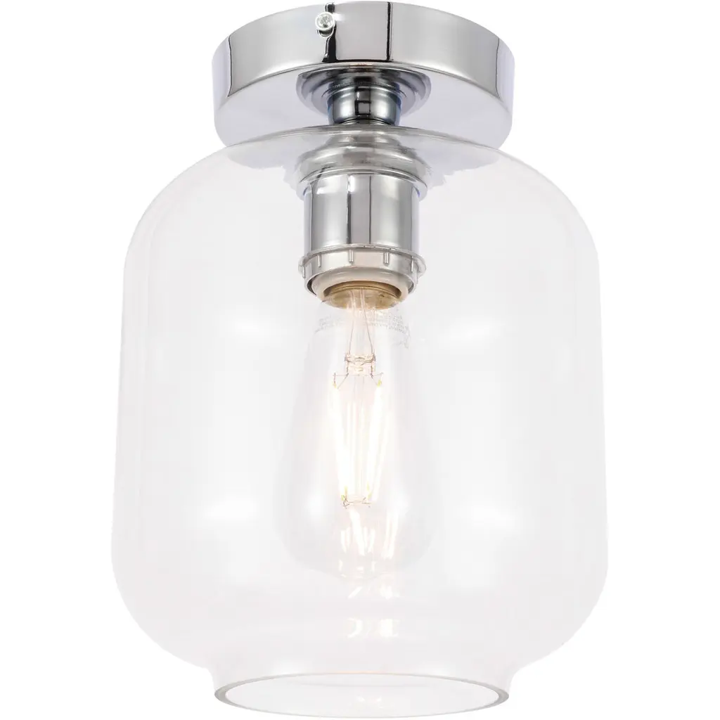 The Collier Collection of lights will be sure to have your guests admire your modern sense of style with the beautiful simplicity of its shape and form. This flush mount allows brilliant illumination to shine and radiate, allowing for your room to be center stage, and despite its minimalism, its design is far from boring--available in a brass, chrome, or black finish, with either a clear or frosted cylinder glass shade. The sleek organic curves of the mount and the cylinder that encapsulates the bulb will enhance your bathroom, foyer, or hallways, allowing for you to always live a chic and fashionable lifestyle, no matter where you are (light bulbs not included).