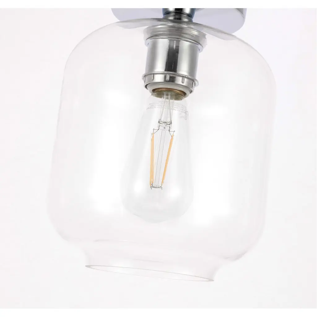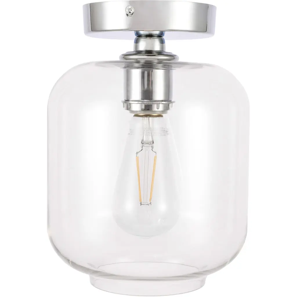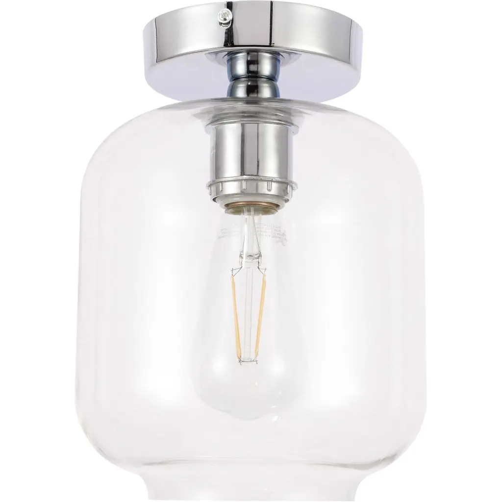 The Collier Collection of lights will be sure to have your guests admire your modern sense of style with the beautiful simplicity of its shape and form. This flush mount allows brilliant illumination to shine and radiate, allowing for your room to be center stage, and despite its minimalism, its design is far from boring--available in a brass, chrome, or black finish, with either a clear or frosted cylinder glass shade. The sleek organic curves of the mount and the cylinder that encapsulates the bulb will enhance your bathroom, foyer, or hallways, allowing for you to always live a chic and fashionable lifestyle, no matter where you are (light bulbs not included).
