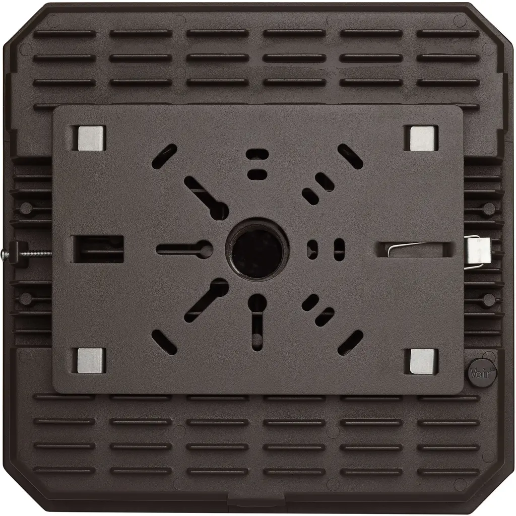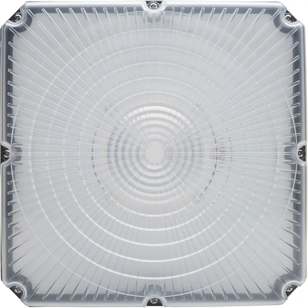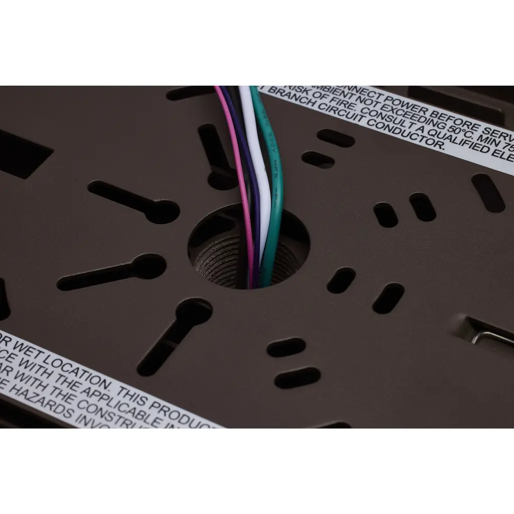 SATCONUVO's 65-981 Field Selectable 10 inch square canopy fixture is an ideal choice for multiple applications. This fixture gives users the flexibility to choose from three wattage and three CCT options during installation. With a choice of surface mounting using the hinged universal bracket or 3/4-inch pendant mounting, installation of this luminary is a breeze. The two side knockouts allow for wiring access to be fast and efficient. The sleek bronze die-cast aluminum housing, the IK08 impact-rated vandal-resistant polycarbonate lens, and the IP65 wet location rating, ensures reliable illumination even in the most adverse weather conditions.
