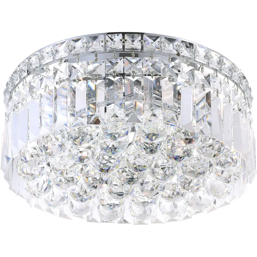 Chandelier Magic Without the Bulk The Colosseum 4-Light Flush Mount solves the ultimate design dilemma: how to get high-end sparkle in no-space situations. This 12" diameter ceiling light combines the crystal density of a luxury chandelier with the practical profile needed for apartments, ranch homes, and cramped entries. Why It Beats Basic Flush Mounts: Optical Expansion Prism-cut crystals create 360 light refraction, making low ceilings appear inches taller. Bulb Flexibility Four E12 sockets (LED Compatible) allow mixing bulb temps (e.g., warm 2700K for evenings, bright 4000K for morning prep). BACL-Certified Safety Tested to withstand vibration and humidity (perfect for humid climates or busy households). Perfect For: 1950s ranch home entries with 8' ceilings Apartment foyers that need "wow" without renovation Walk-in closets deserving boutique-style lighting Install where lighting should cheat dimensions as brilliantly as it illuminates. Designer Secret: For maximum sparkle, use clear (not frosted) LED bulbs and position near a mirror to double the light play.