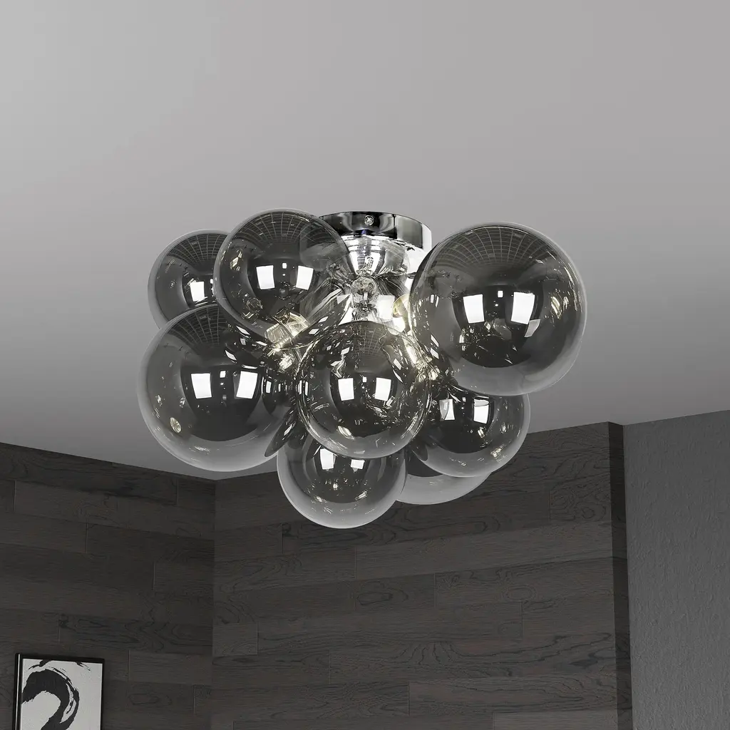 Comet 3 Light 14.25 Inch Smoke With Polished Chrome Flush Mount Ceiling Light