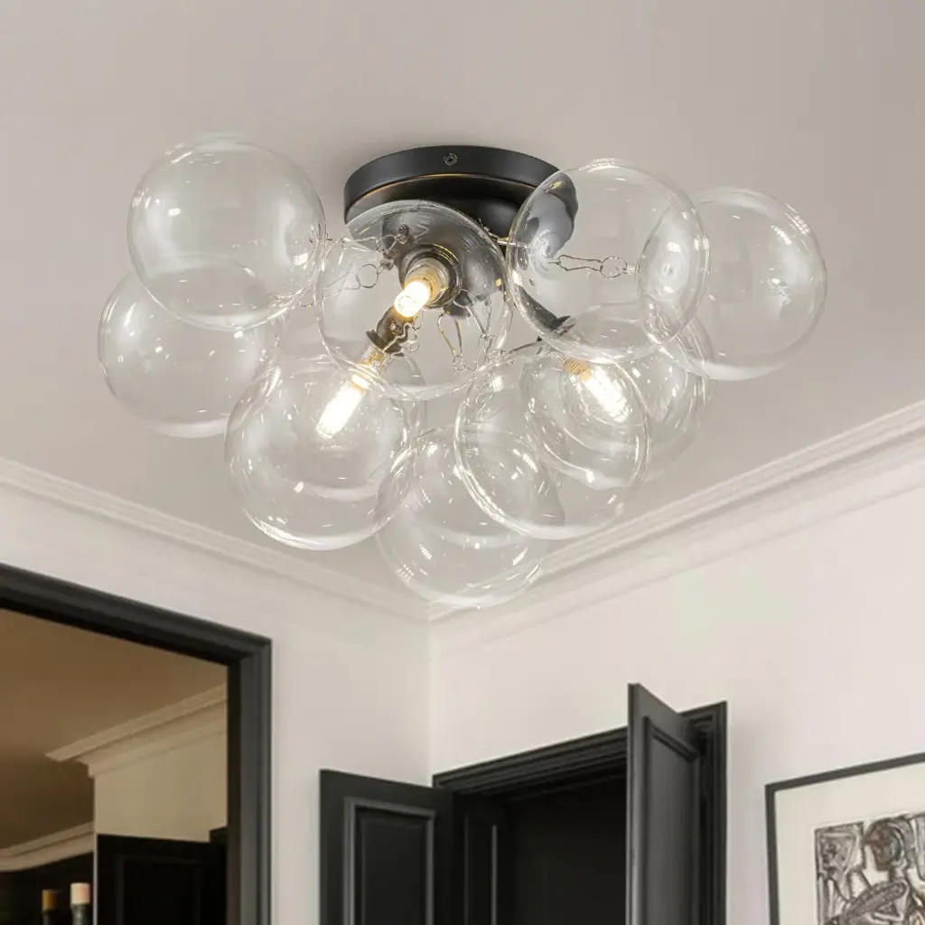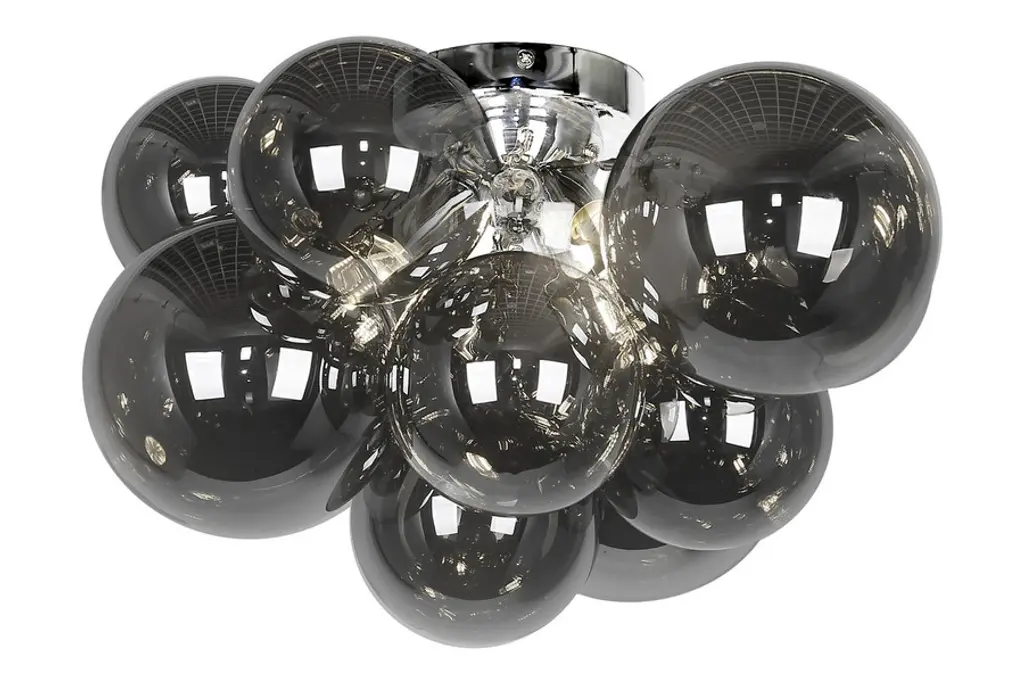 The striking design of the Comet Flush Mount showcases an affinity towards modern contemporary design. Its opulent radiance is reflected through its cluster of orb-shaped glass bulb in varying sizes. They reflect and amplify the lights encased for a bright ambient flow illuminating your living space. Curves intertwined into one formulated mass help to create dynamic texture in rooms such as your kitchen, dining room, living room, and hallway. It also comes in your choice of clear or smoked glass to meet your preference.Canopy/Back Plate Height: 1" Canopy/Back Plate Diameter: 4.75" Shade Height: 5.91" Shade Top Diameter: 5.91" Shade Bottom Diameter: 5.91"