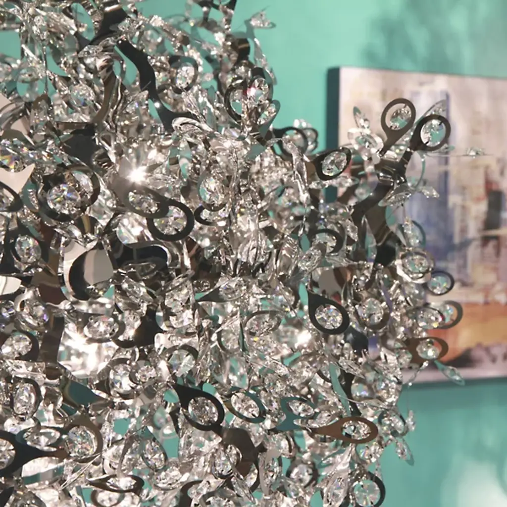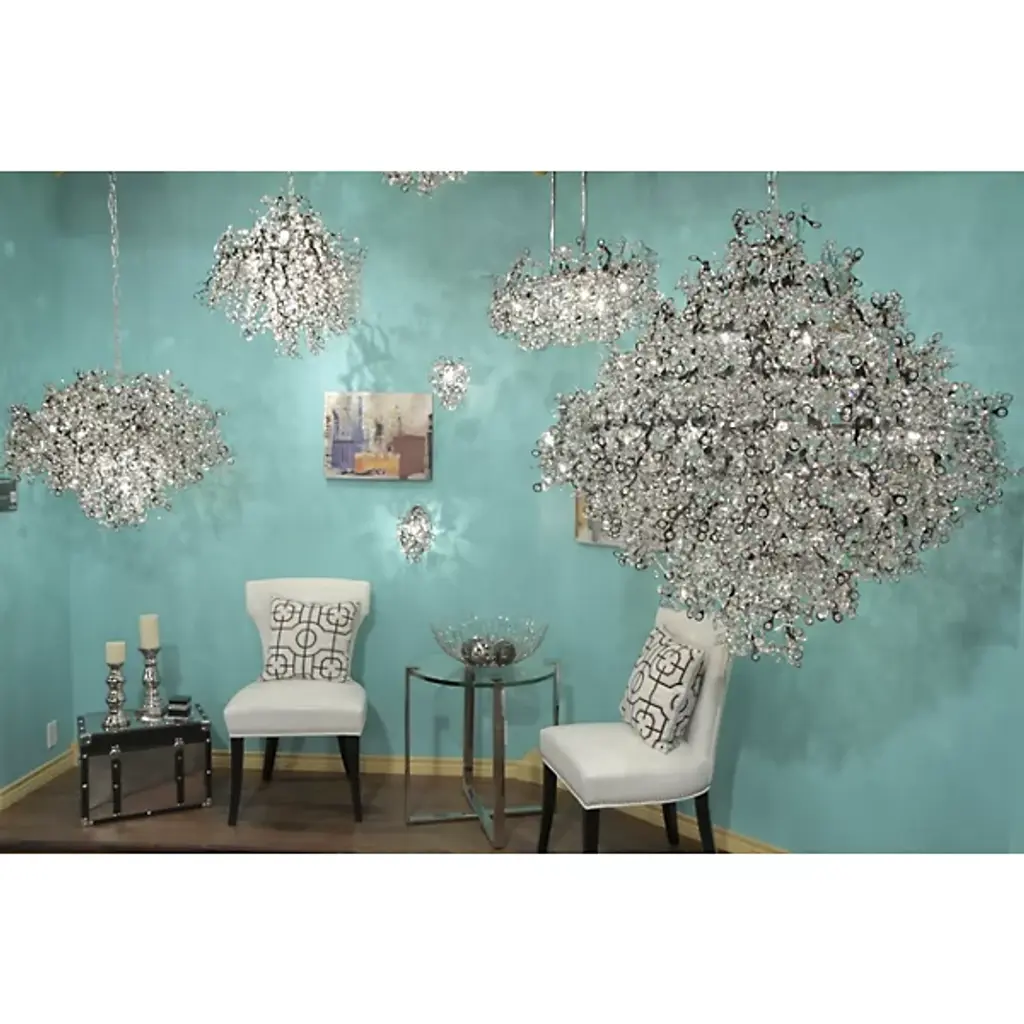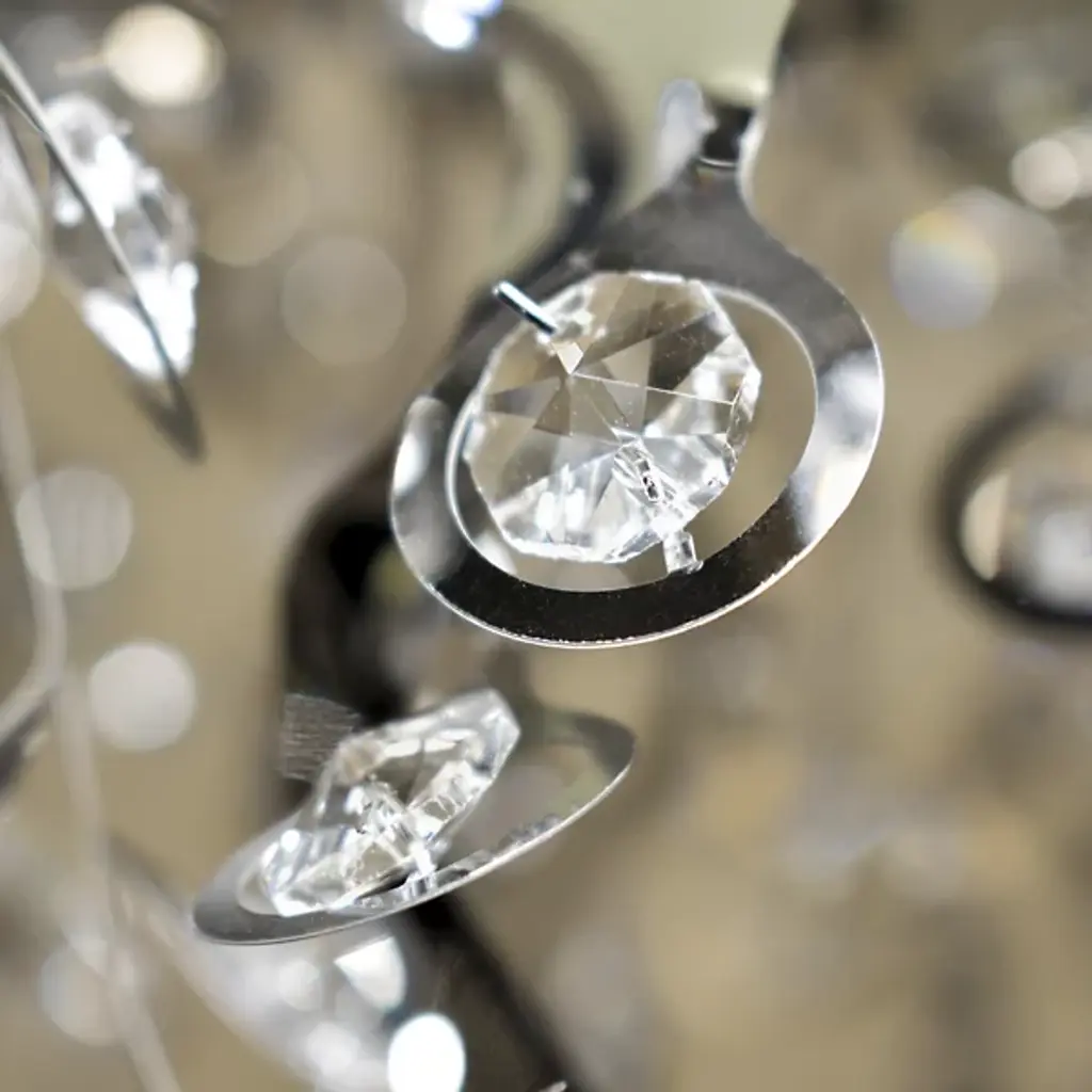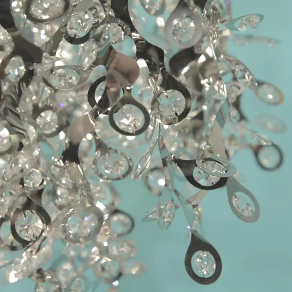 The Maxim Lighting Comet Flushmount has a beautifully celestial form for contemporary interiors. It features a large, intricate and somewhat plant-like cluster of metal. Numerous beveled crystal accents reside in the metal tips, complementing their Polished Chrome finish and sending shards of sparkling light in all directions.
