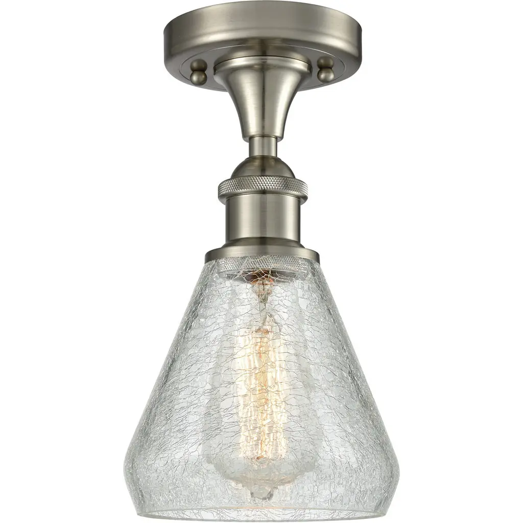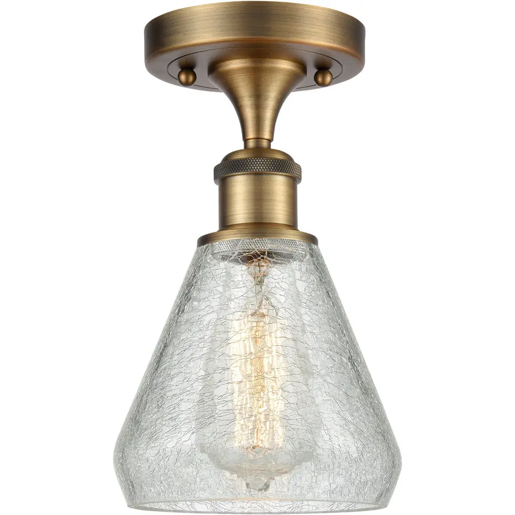 Conesus - 1 Light 6" Flush Mount - Antique Brass Finish - Clear Crackle Glass Shade