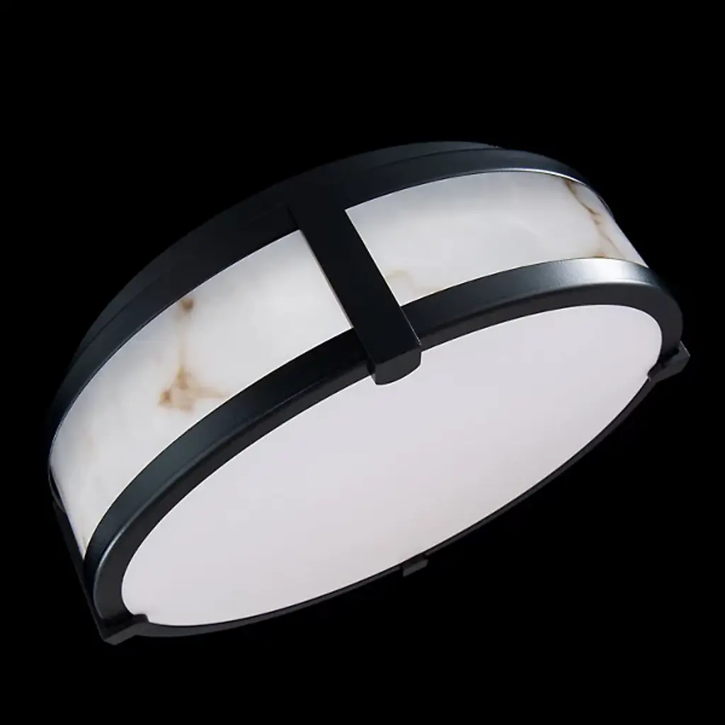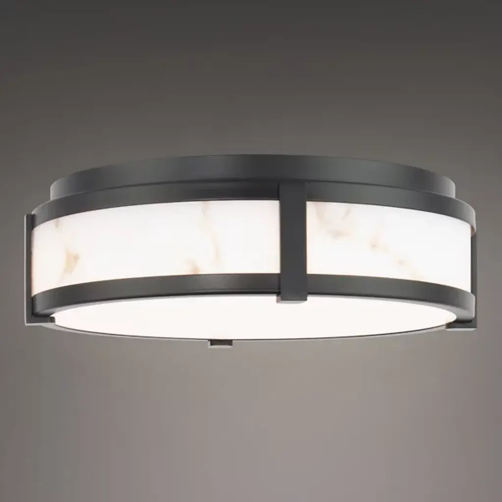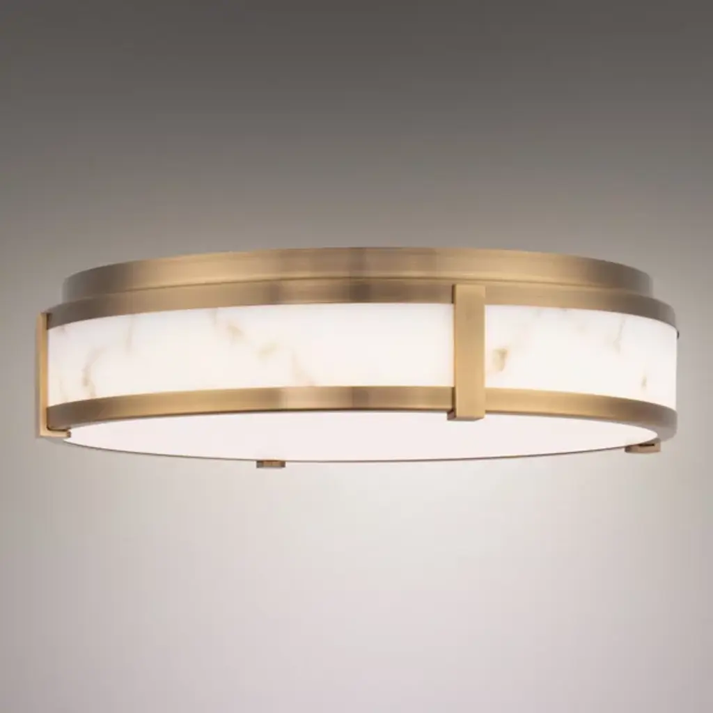 The Constantine LED Flushmount by dweLED is a beautiful addition to spaces featuring a faux alabaster diffuser that mimics the look of its real stone counterpart. This lovely diffuser runs around the edge of this close to the ceiling design, neatly held by a solid aluminum frame with an airy construction. Fit with an etched acrylic diffuser to fully conceal the energy-efficient source within this design, this fixture has an elegant air as it softly filters a layer of illumination onto surroundings.