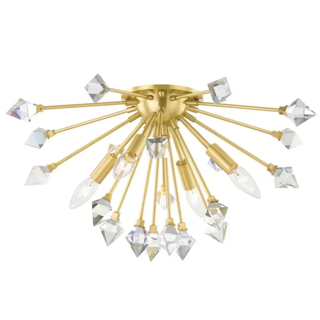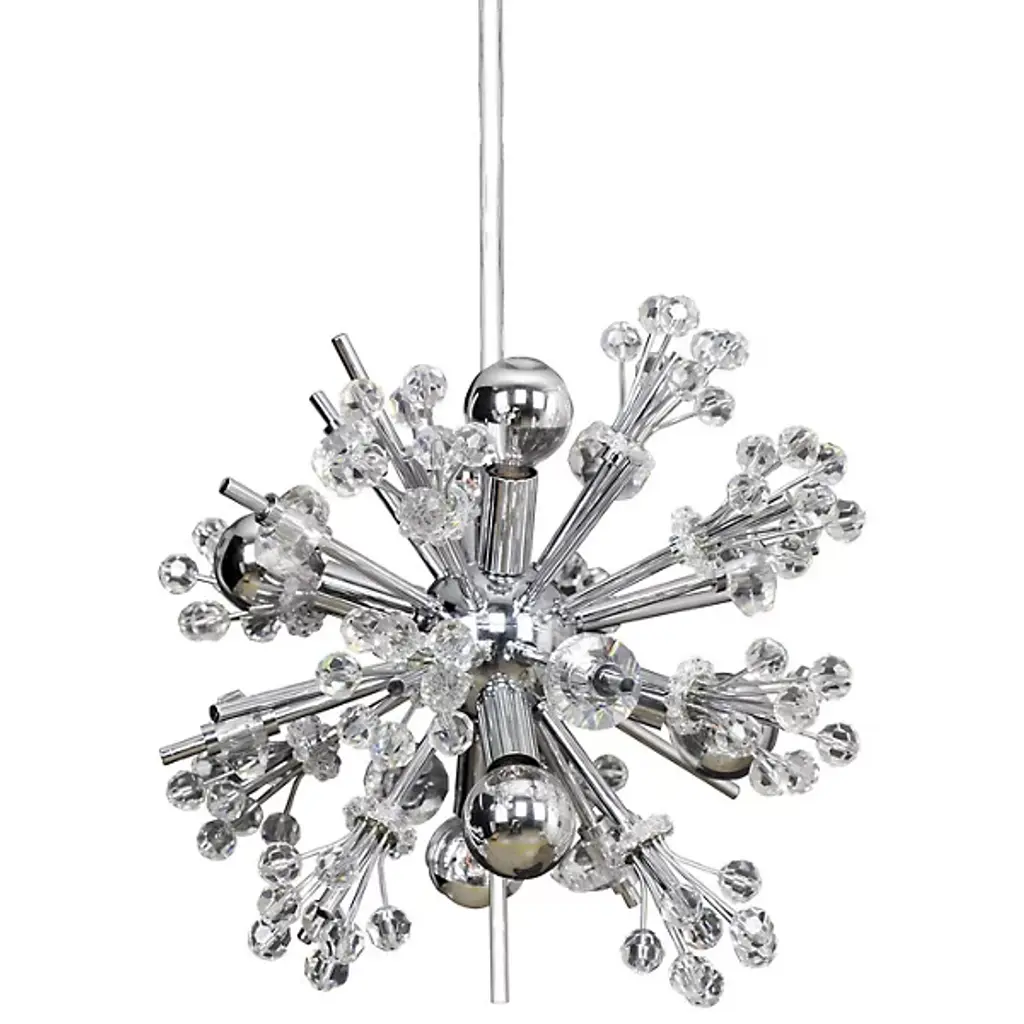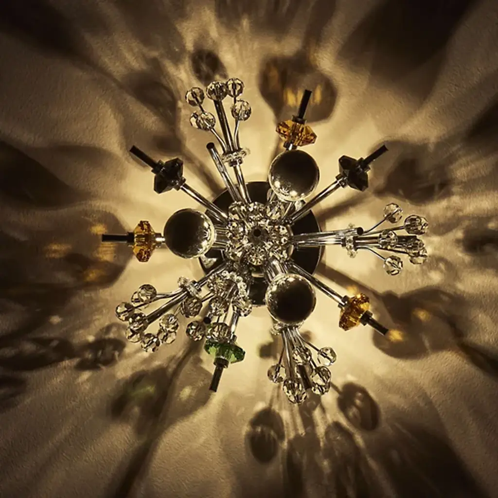 The Constellation Wall / Flushmount is directly inspired by the infamous chandeliers in the Lincoln Center's Metropolitan Opera House first installed in the 1960s. Bursting with energy in the form of extruding rods accented with crystal clusters, this fixture has a very dynamic presence. Deriving from the inspiration but scaling it down for residential use; Allegri, a division of Kalco lighting, is proud to present their Constellation Collection.