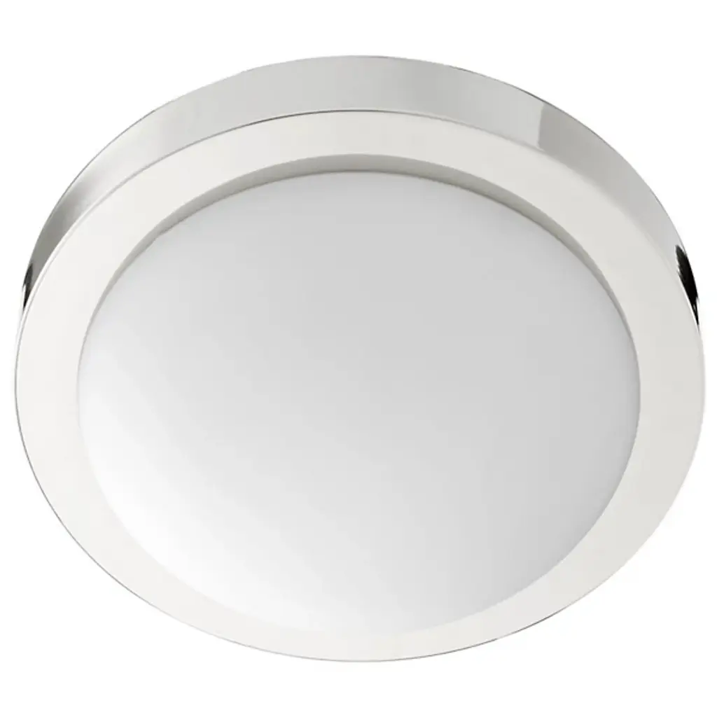 Adding simple, yet functional form to your modern space, the Contempo Flushmount from Quorum International is a sleek example of contemporary design. A globe-shaped, satin opal glass shade extends from a thick circular layer that cleanly frames the piece. A single bulb rests inside the smooth shade, bringing a warm, inviting glow into the space. With a damp rating, this piece is versatile, bringing its welcoming, soothing presence wherever it’s needed most in your home.