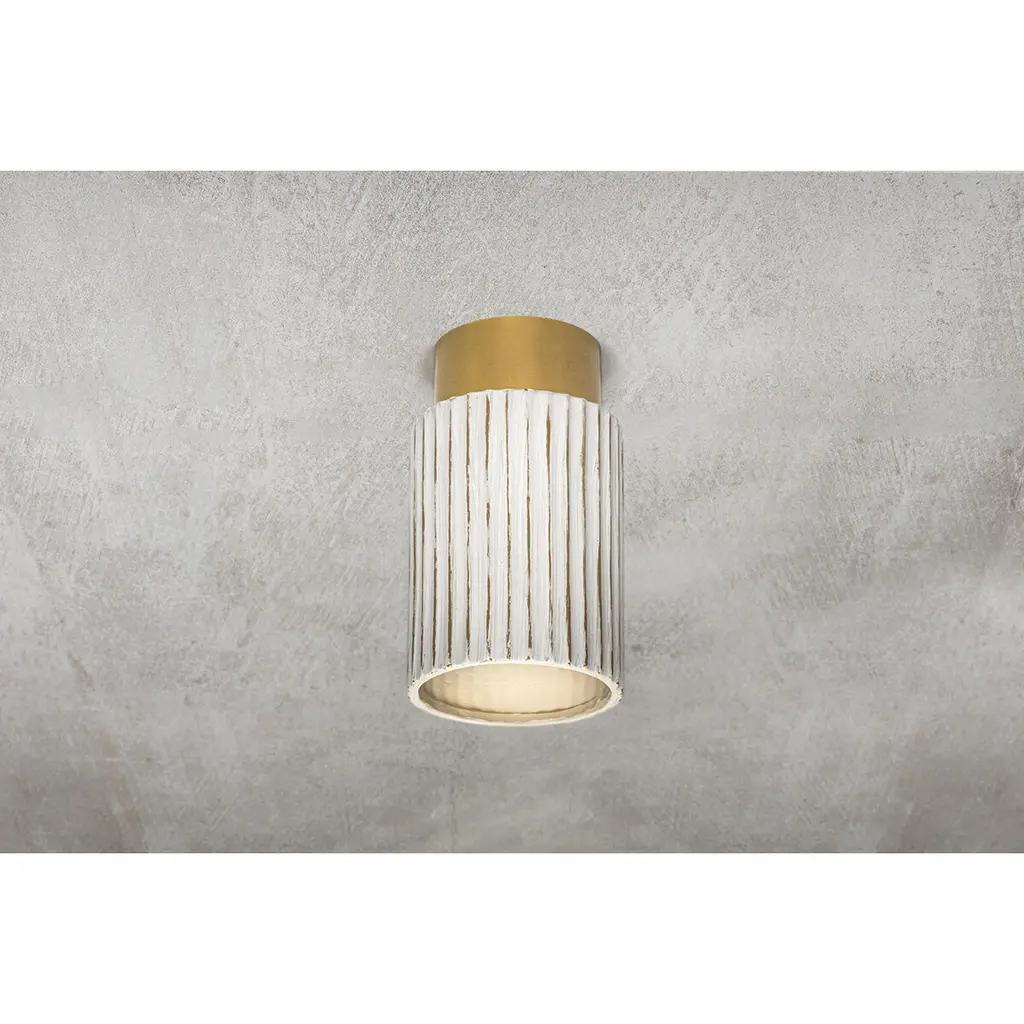 Treading the line between classic architecture and contemporary minimalism, Corissa features acylindrical body reminiscent of a Roman column. Crafted from fluted Whitewashed Bisque, thefixture is balanced by a flawless Aged Brass cap and chain. Whether as a pendant light or flushmount, Corissa's silhouette exudes depth and character, making a chic statement in hallwaysand kitchens. Part of THELIFESTYLEDCO® collection.