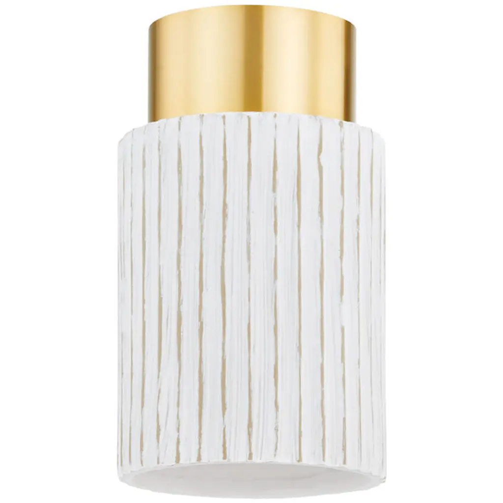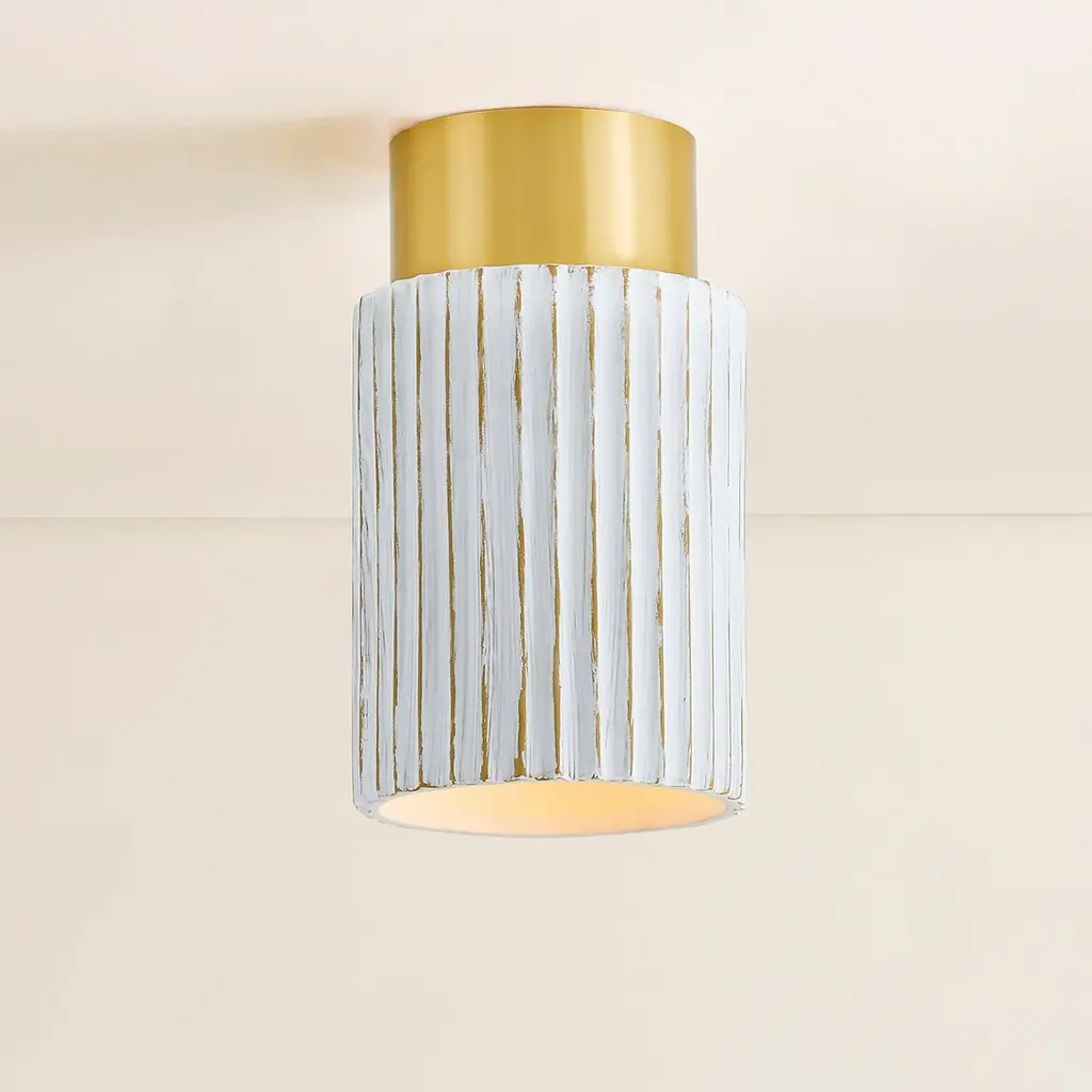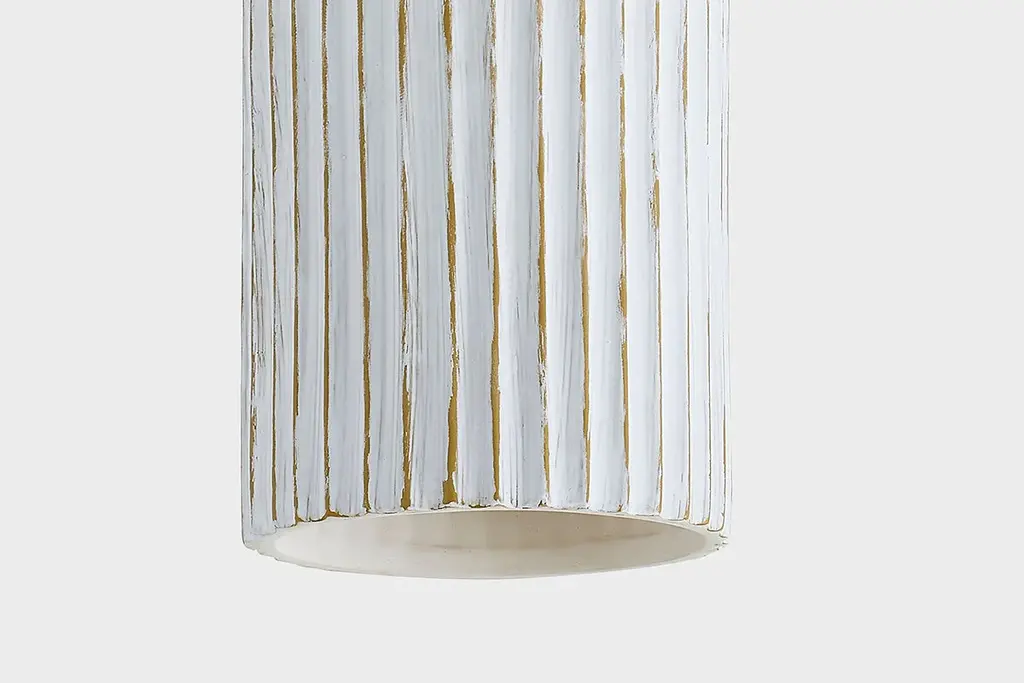 Treading the line between classic architecture and contemporary minimalism, Corissa features a cylindrical body reminiscent of a Roman column. Crafted from fluted Whitewashed Bisque, the fixture is balanced by a flawless Aged Brass cap and chain. Whether as a pendant light or flush mount, Corissa's silhouette exudes depth and character, making a chic statement in hallways and kitchens. Part of THELIFESTYLEDCO® collection.