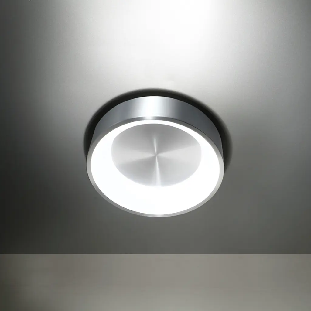 Cleverly hidden LED modules and a circular frosted diffuser floating inside a halo of spun aluminum work together for a beautiful, even illumination. Energy efficient integrated LED's provide a long-lasting maintenance-free bright and even illumination. Solid aluminum construction with a white PC diffuser for maximum brightness and even illumination.