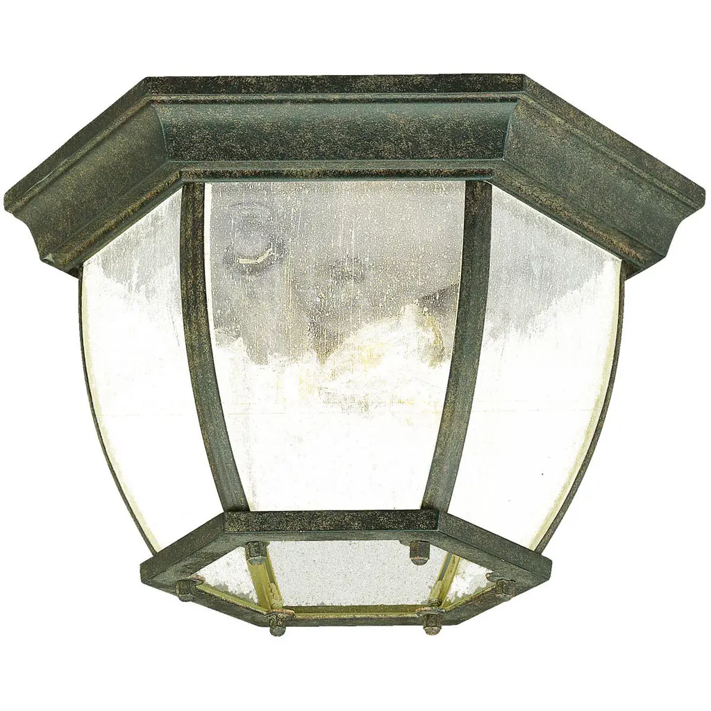 The Courtyard Outdoor Flushmount from Kichler embodies the warmth of secluded garden terraces. This three-light fixture features seeded glass panels that transform ordinary light into a display of subtle patterns. The aluminum construction balances durability with refined aesthetics, making it perfect for covered outdoor spaces. Its design draws inspiration from traditional lantern styles while maintaining clean lines that complement modern architecture. The fixture excels in creating an inviting ambiance on covered porches, pergolas, and outdoor living areas.