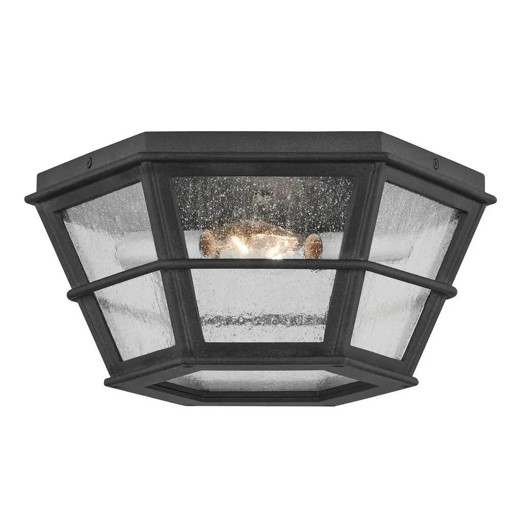 The Courtyard Outdoor Flushmount from Kichler embodies the warmth of secluded garden terraces. This three-light fixture features seeded glass panels that transform ordinary light into a display of subtle patterns. The aluminum construction balances durability with refined aesthetics, making it perfect for covered outdoor spaces. Its design draws inspiration from traditional lantern styles while maintaining clean lines that complement modern architecture. The fixture excels in creating an inviting ambiance on covered porches, pergolas, and outdoor living areas.