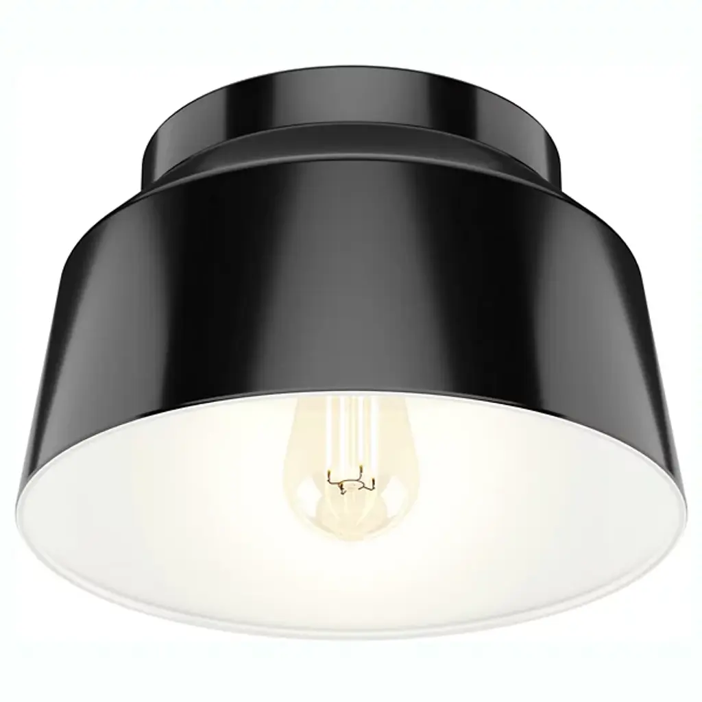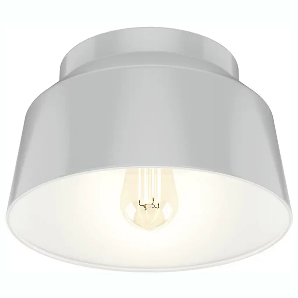Both retro and modern, the Cranbrook Flushmount by Hunter Fans takes cues from mid-century modern design and creates a clean and contemporary piece. A metal hood angles softly to shade its inner lamping and direct its light downward. A white interior presents a vivid contrast to its outer finish and enhances the warm glow emanating from its single light bulb. Its simplistic design offers just the right amount of vintage personality to suit any modern space.