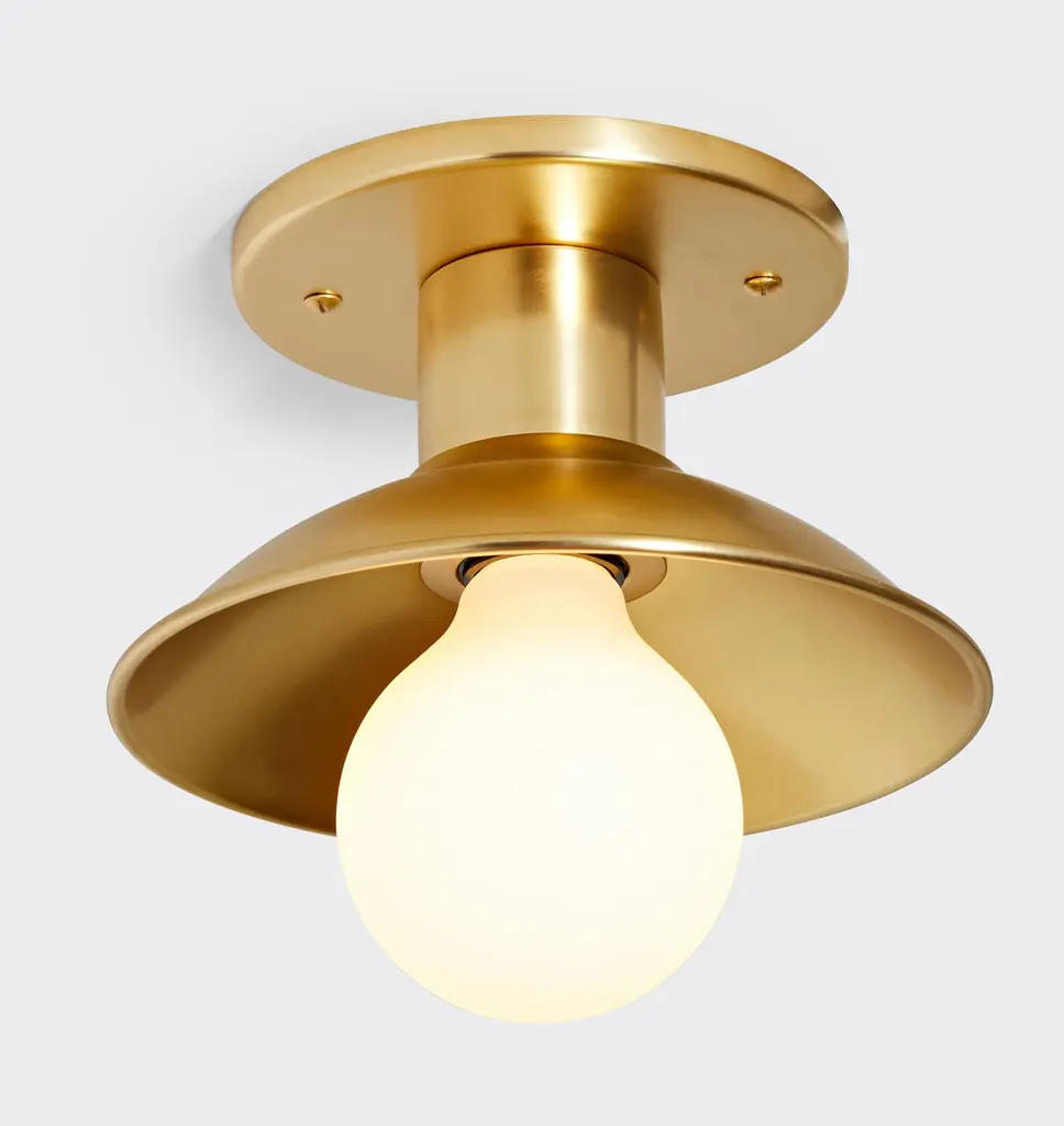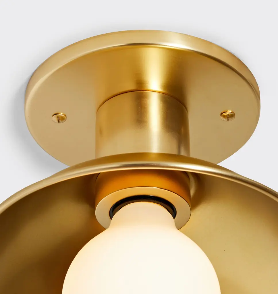 Inspired by 1960s Scandinavian wall sconces, Crawford's pared back silhouette and elegant design will instantly elevate any space it finds a home—both indoors and out. Made from solid brass, place one or two beside your bathroom mirror, mantle, or front porch for an update that will last for years to come. Details You'll Appreciate Sleek Mid-Century design Exposed bulb fixture highlights your choice of decorative bulb Wall or ceiling compatible Product Specifications Solid brass construction For indoor and covered outdoor use (UL Rated Damp) Imported