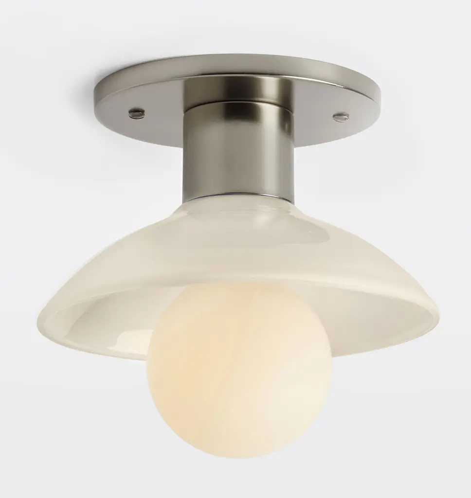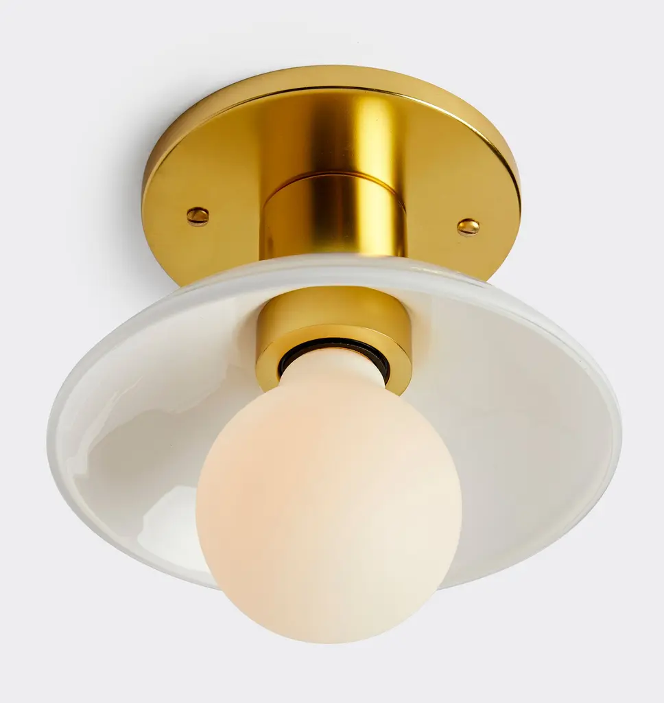 Inspired by Mid-Century Scandinavian lighting, our Crawford Flush Mount features a minimalist silhouette and solid brass construction that instantly enhances any space. Available in several finish options. Details You'll Appreciate Sleek Mid-Century design Exposed bulb fixture highlights your choice of decorative bulb Wall or ceiling compatible Suitable for indoor and covered outdoor use (UL Rated Damp) Product Specifications Solid brass construction; with glass shade Hardwired; professional installation recommended Imported