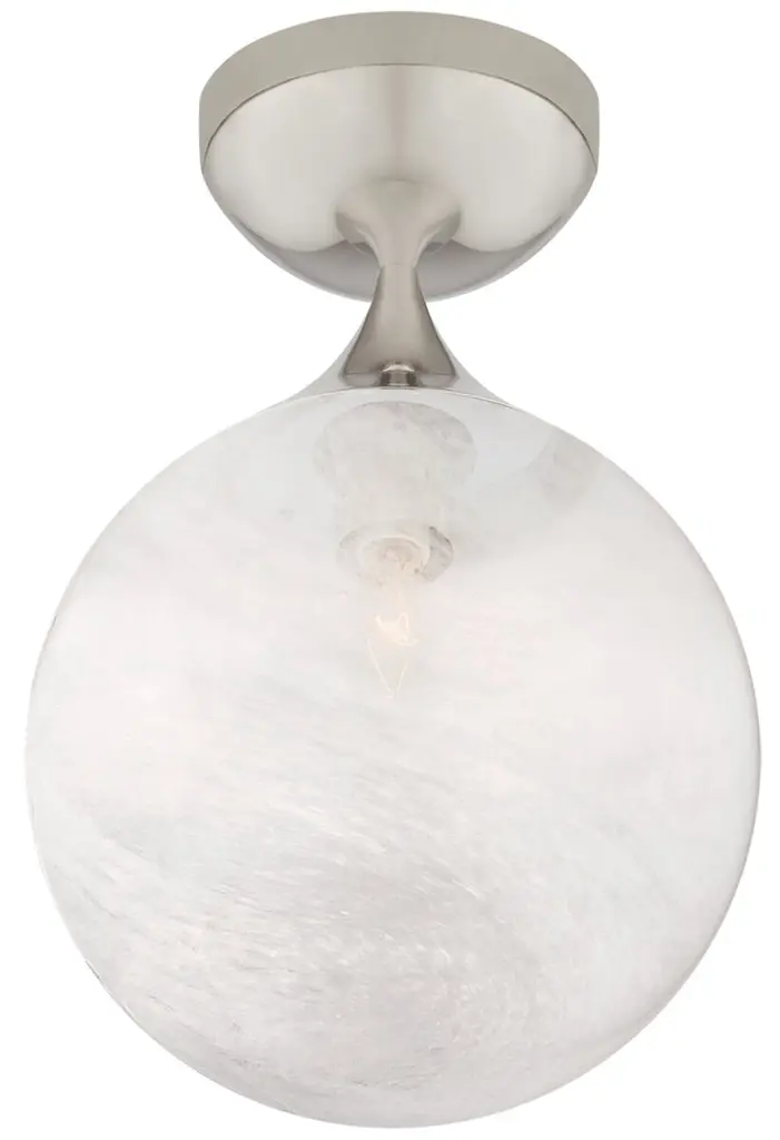 Putting a stylish spin on the classic ceiling mount, this fixture features a large strié glass globe shade affixed to a lustrous brass canopy.