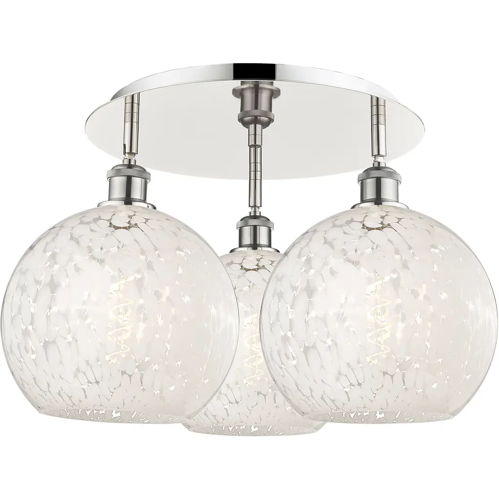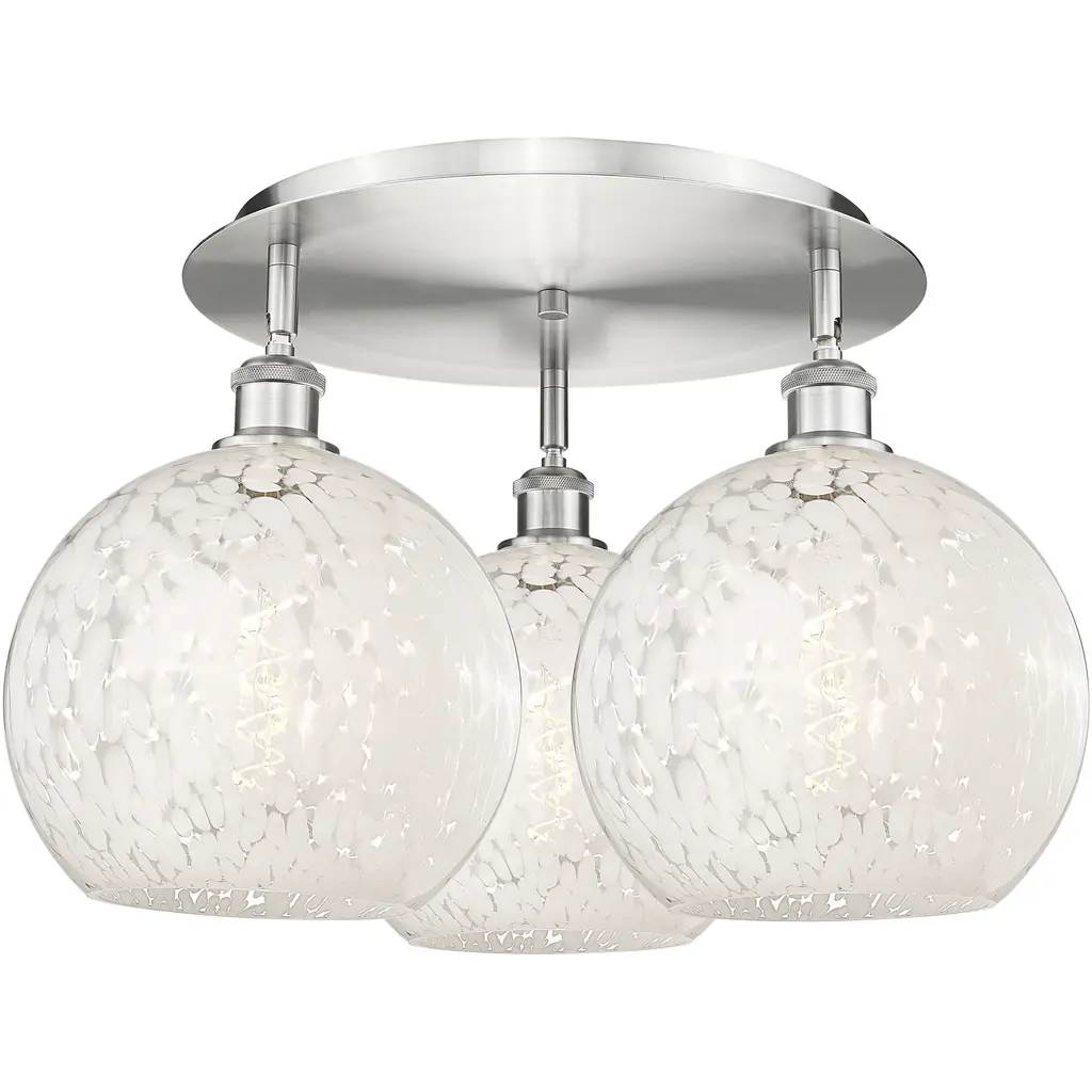 Putting a stylish spin on the classic ceiling mount, this fixture features a three strie glass globe shades affixed to a hand-rubbed, antiqued brass body. Because this fixture is damp rated, you can use it covered outdoor areas as well as indoors. Hardwired.