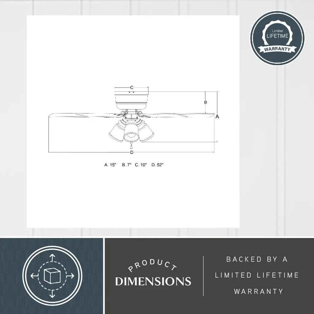 The Cromwell ceiling fan delivers both style and function, with a transitional design that complements any living space or bedroom. Enjoy year-round comfort with its three speeds and reversible motor, easily controlled by the included remote or pull chain. This competitively priced fan with quick installation blades, wiring and glass shades makes upgrading your home a breeze, whether you're a seasoned DIYer or first-time homeowner.