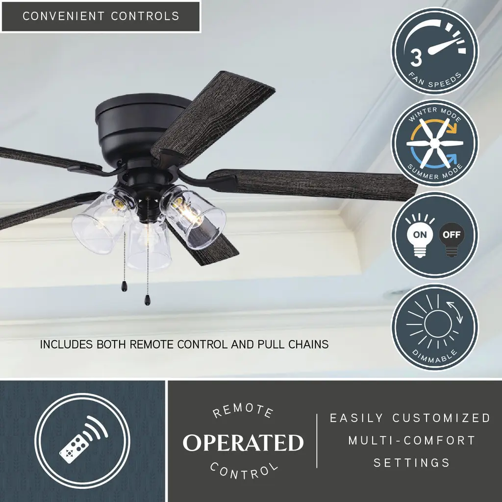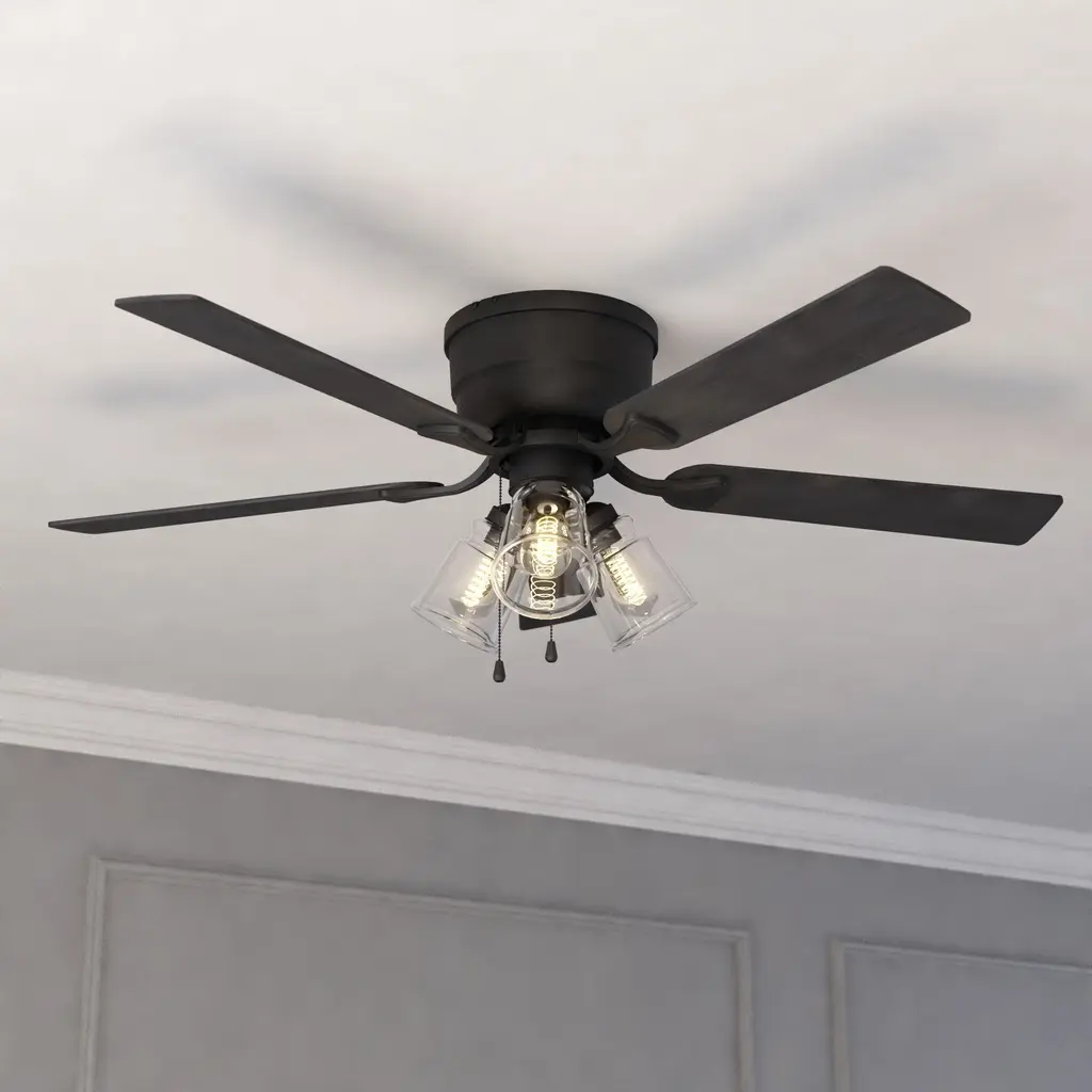 Cromwell 52 Inch Matte Black With Matte Black-Black Oak Blades Flush Mount Hugger Ceiling Fan
