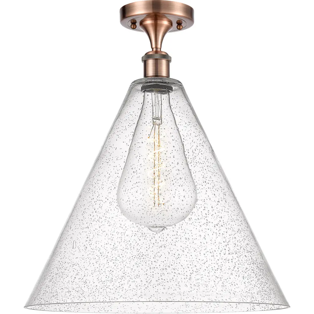 Crown Point 1 Light 16 Inch Satin Nickel Flush Mount Ceiling Light In Seedy Glass