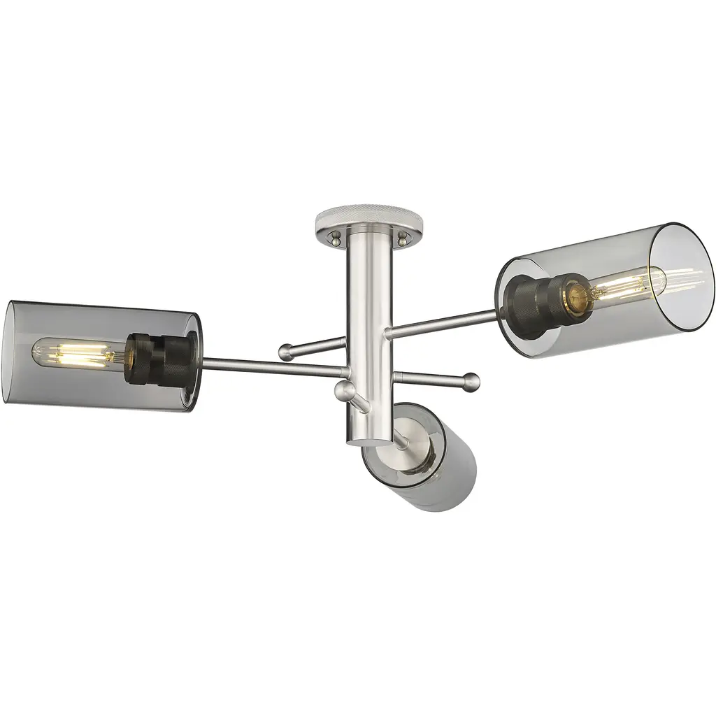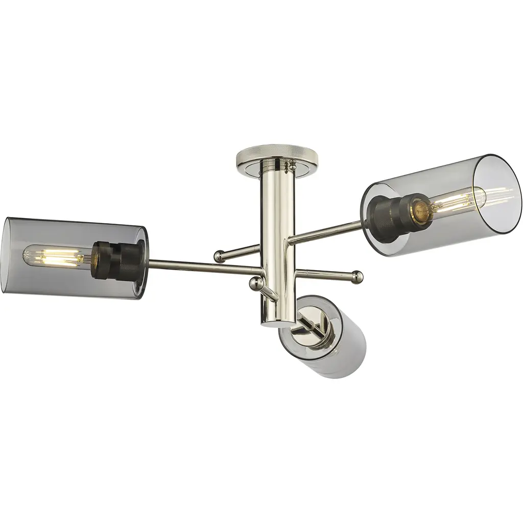 Crown Point 3 Light 39.25 Inch Polished Nickel Flush Mount Ceiling Light In Light Smoke Glass