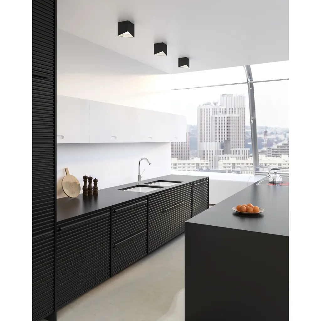 The Cubix Collection is a playful take on the geometric patterns of origami. These fixtures are a luxe duotone finish of black and white that allows for easy integration into most color schemes and styles. The frosted acrylic diffuse provides softened direct lighting that's wonderful for bathrooms and kitchens.