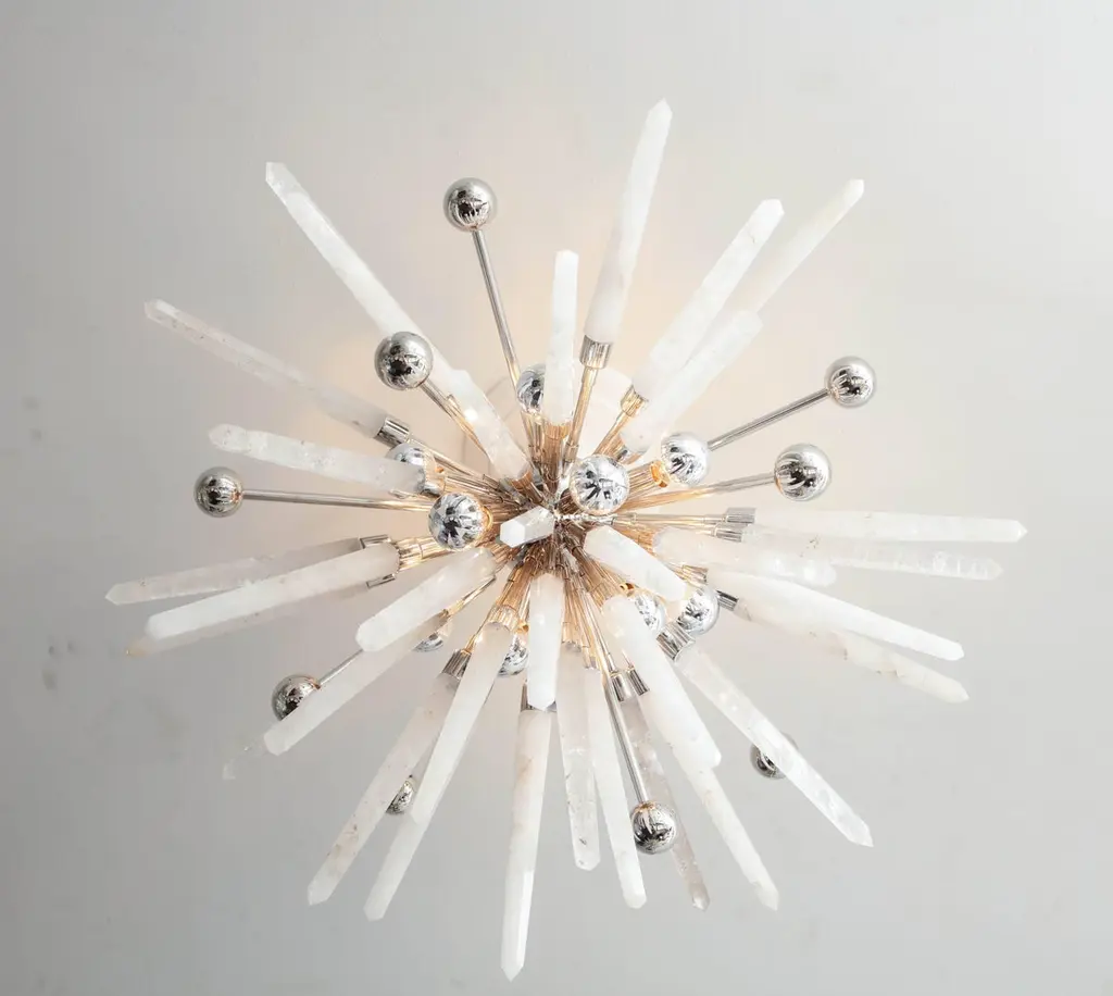 Custom Brazilian Rock Crystal Flush Mount Light Fixture