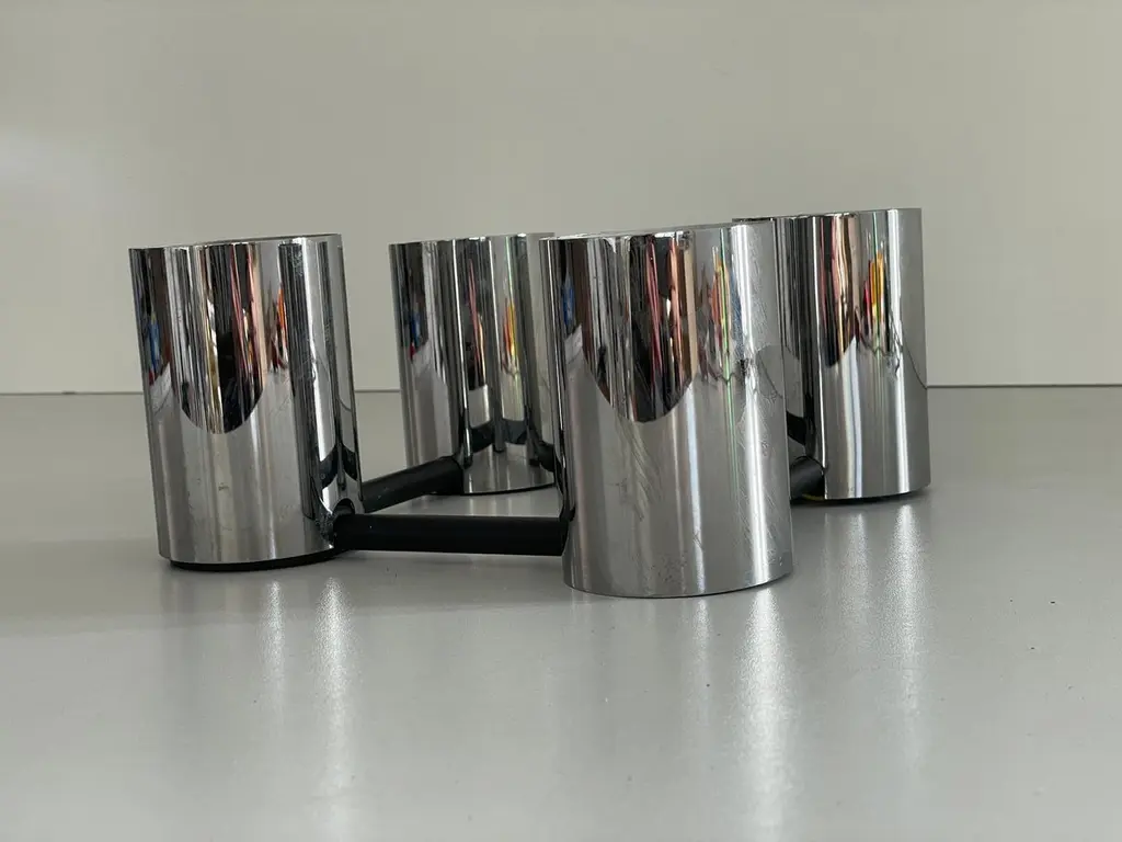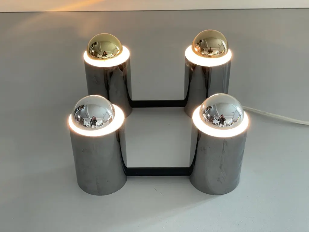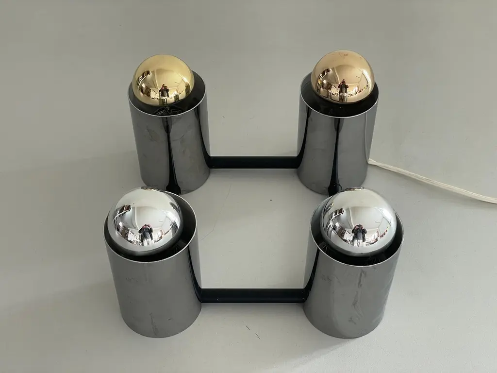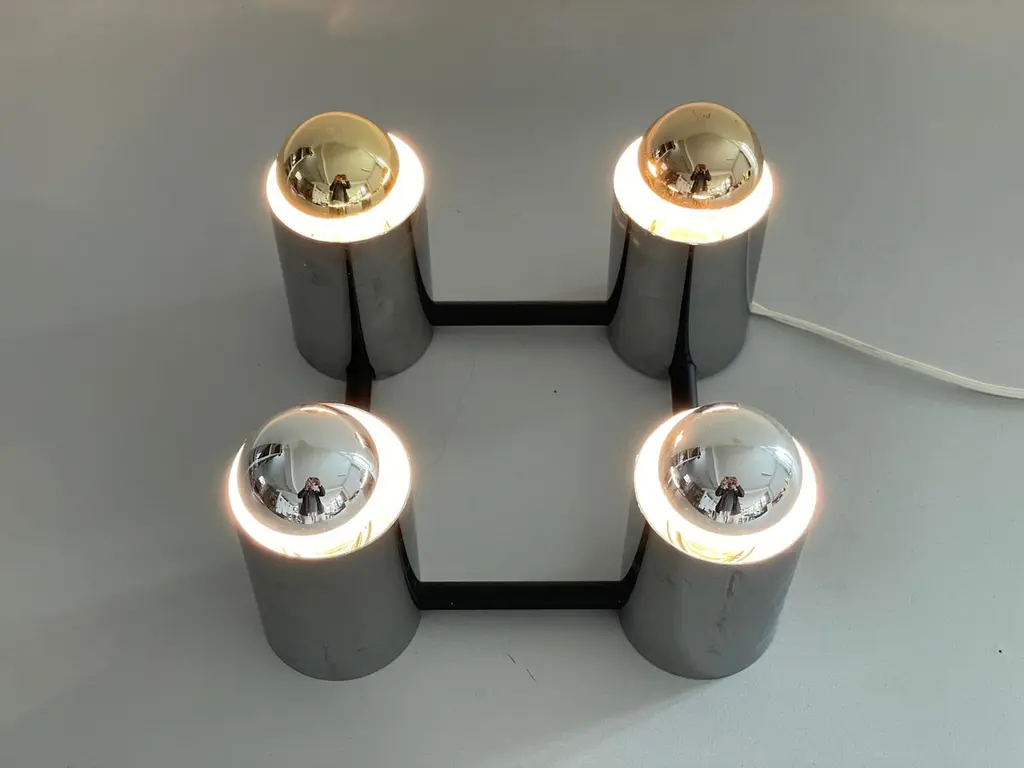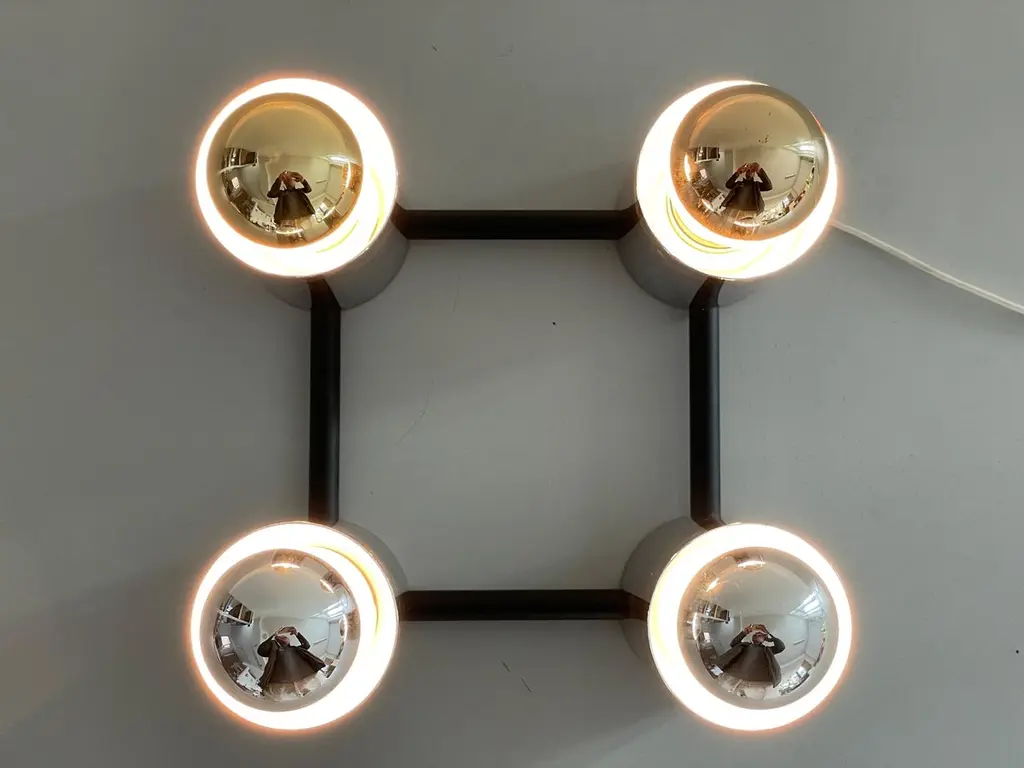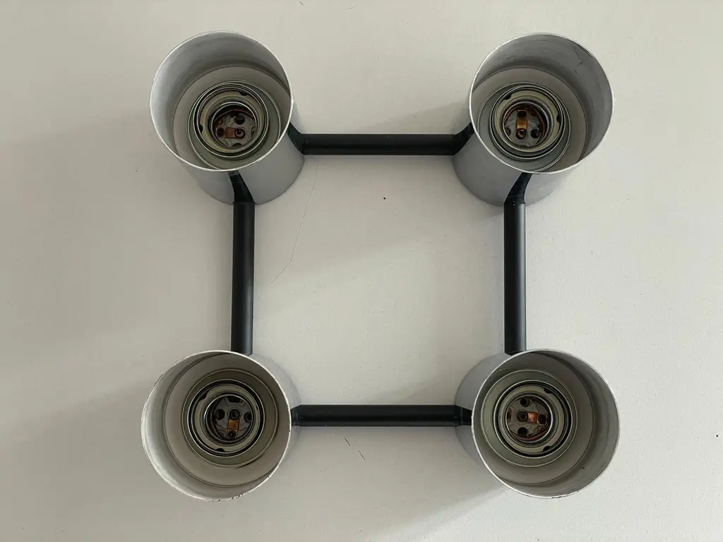 Cylindrical Square Design Flush Mount Ceiling Lamp by Beisl, 1960s, GermanyIt is very ideal and suitable for all living areas.Note : In the photos, 2 silver bulbs and 2 gold bulbs were used while the lamp was workingLamp is in good condition. No damage, no crack.Wear consistent with age and use.This lamp works with 4x E27 light bulbs.Wired and suitable to use with 220V and 110V for all countries.Measurements: 24 cm x 24 cm x 11 cm