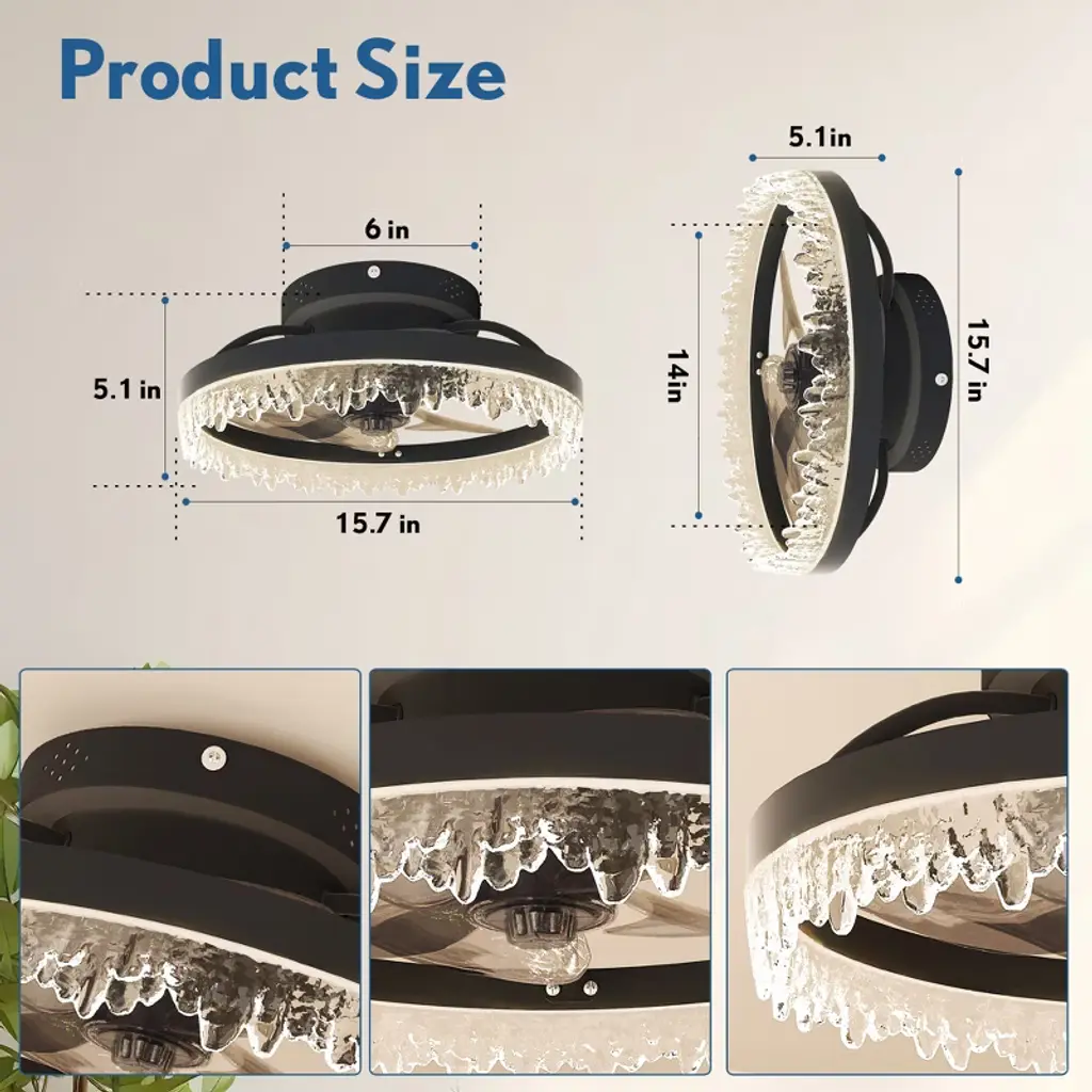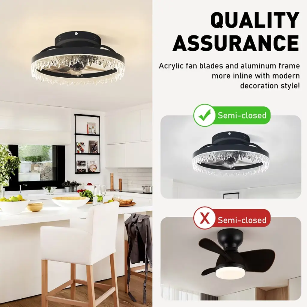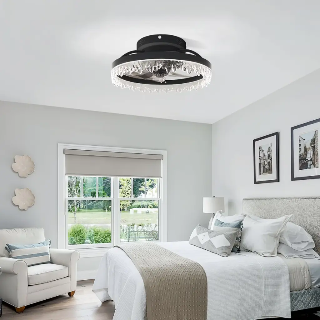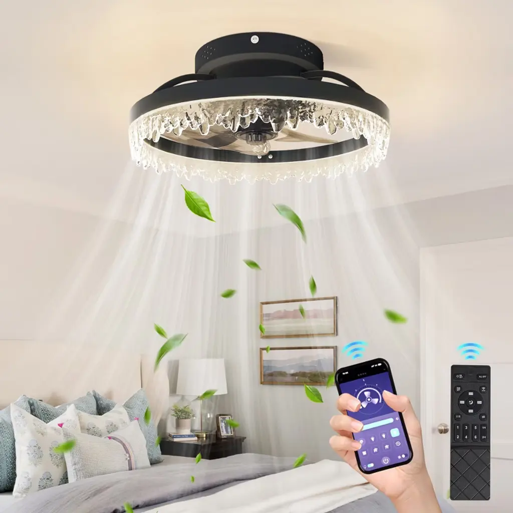 This modern LED ceiling fan light combines sleek design with practical functionality. Featuring hidden blades and a crystal-inspired decorative edge, it delivers both elegant lighting and powerful airflow. Perfect for bedrooms, living rooms, or dining areas, it adds a stylish, space-saving solution to any modern home.