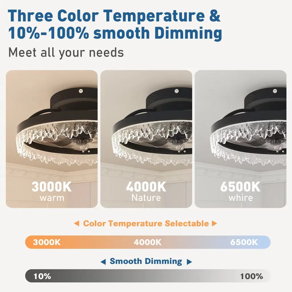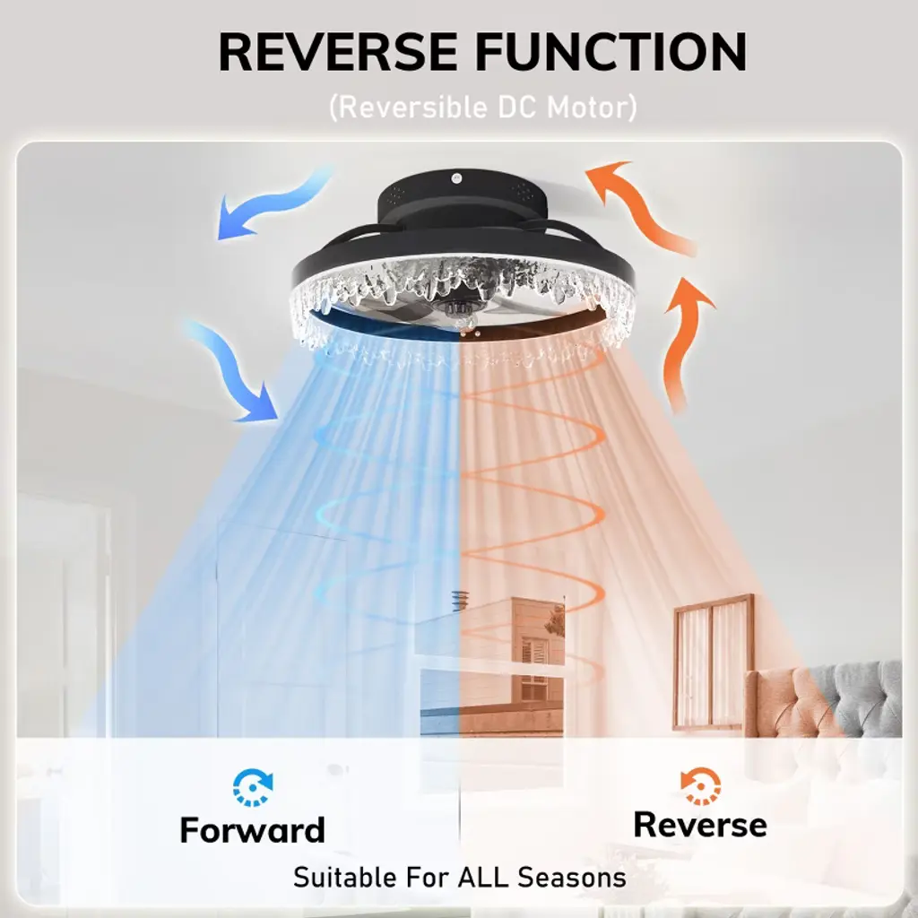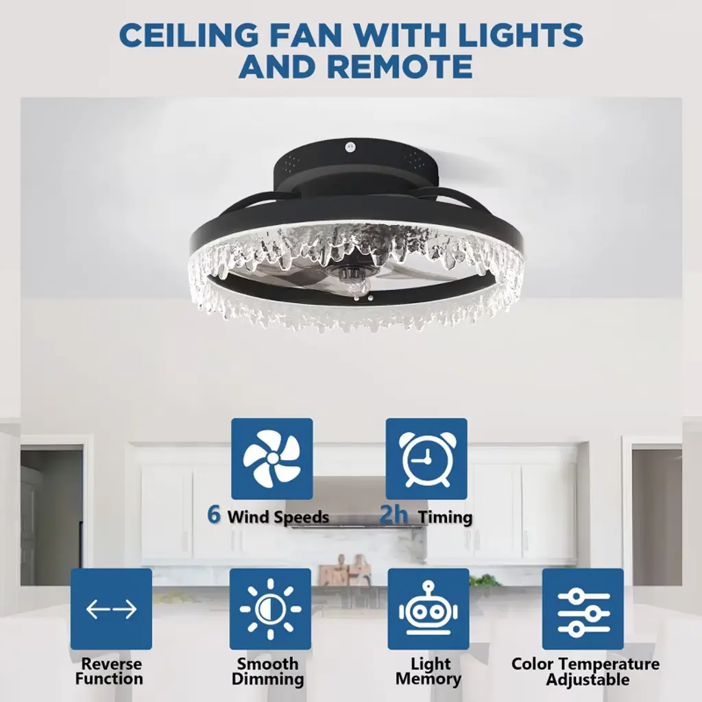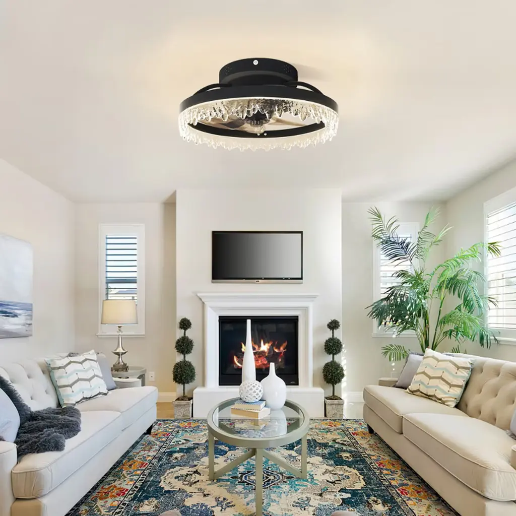 This modern LED ceiling fan light combines sleek design with practical functionality. Featuring hidden blades and a crystal-inspired decorative edge, it delivers both elegant lighting and powerful airflow. Perfect for bedrooms, living rooms, or dining areas, it adds a stylish, space-saving solution to any modern home.