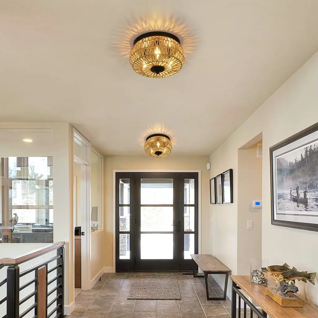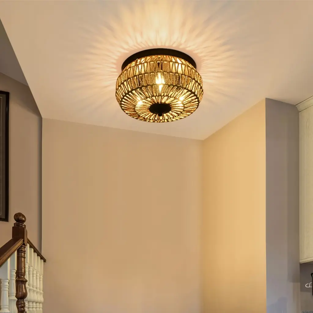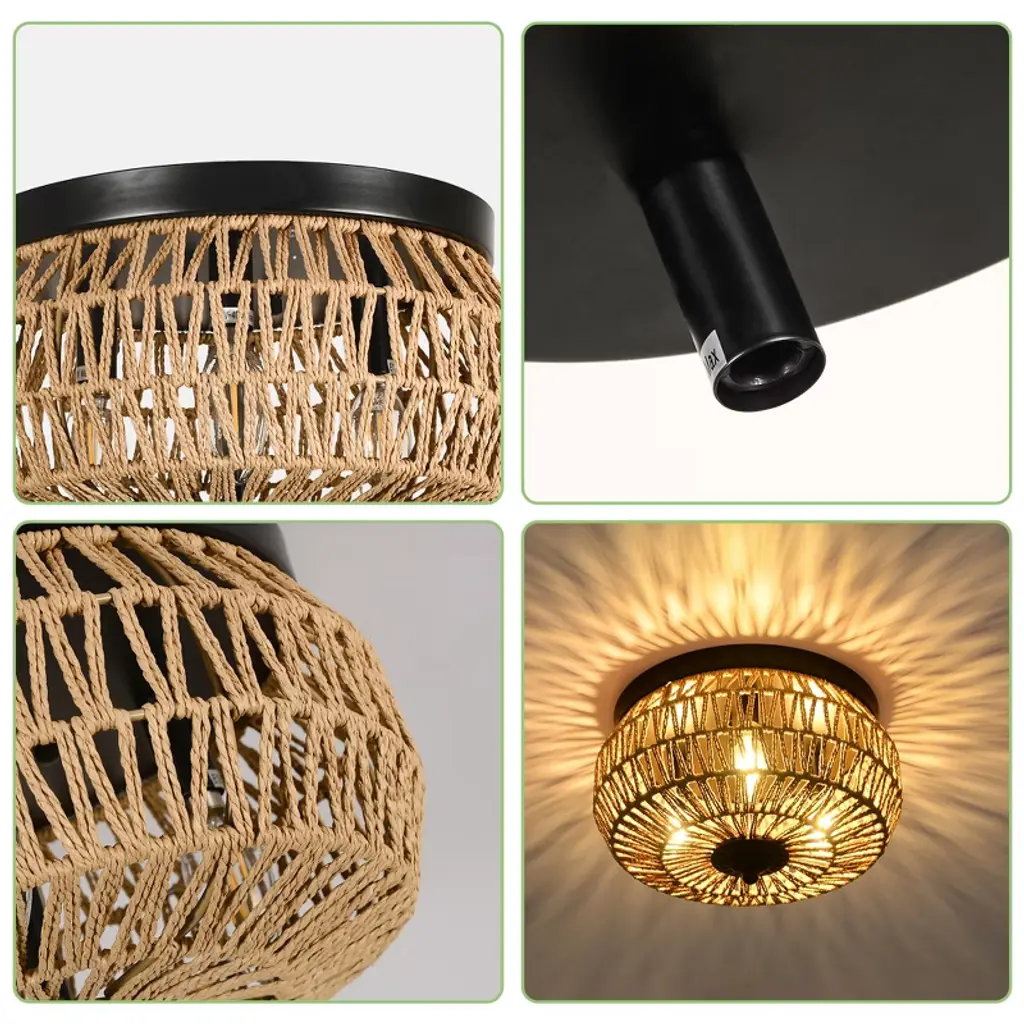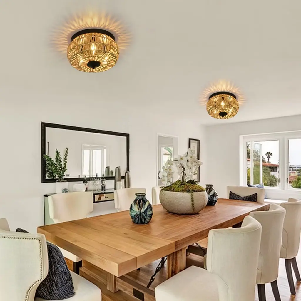 100% Handcrafted Woven Rattan: This exquisite flush mount ceiling light features a beautifully woven rattan shade, meticulously crafted by skilled artisans. Its hollow design allows light to spill in all directions, creating a stunning interplay of light and shadows that infuses your space with warmth and charm. Each fixture is one-of-a-kind, showcasing the artistry of hand-woven craftsmanship.