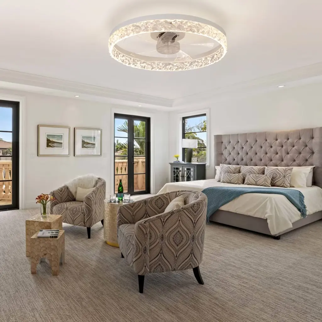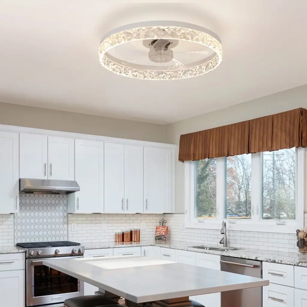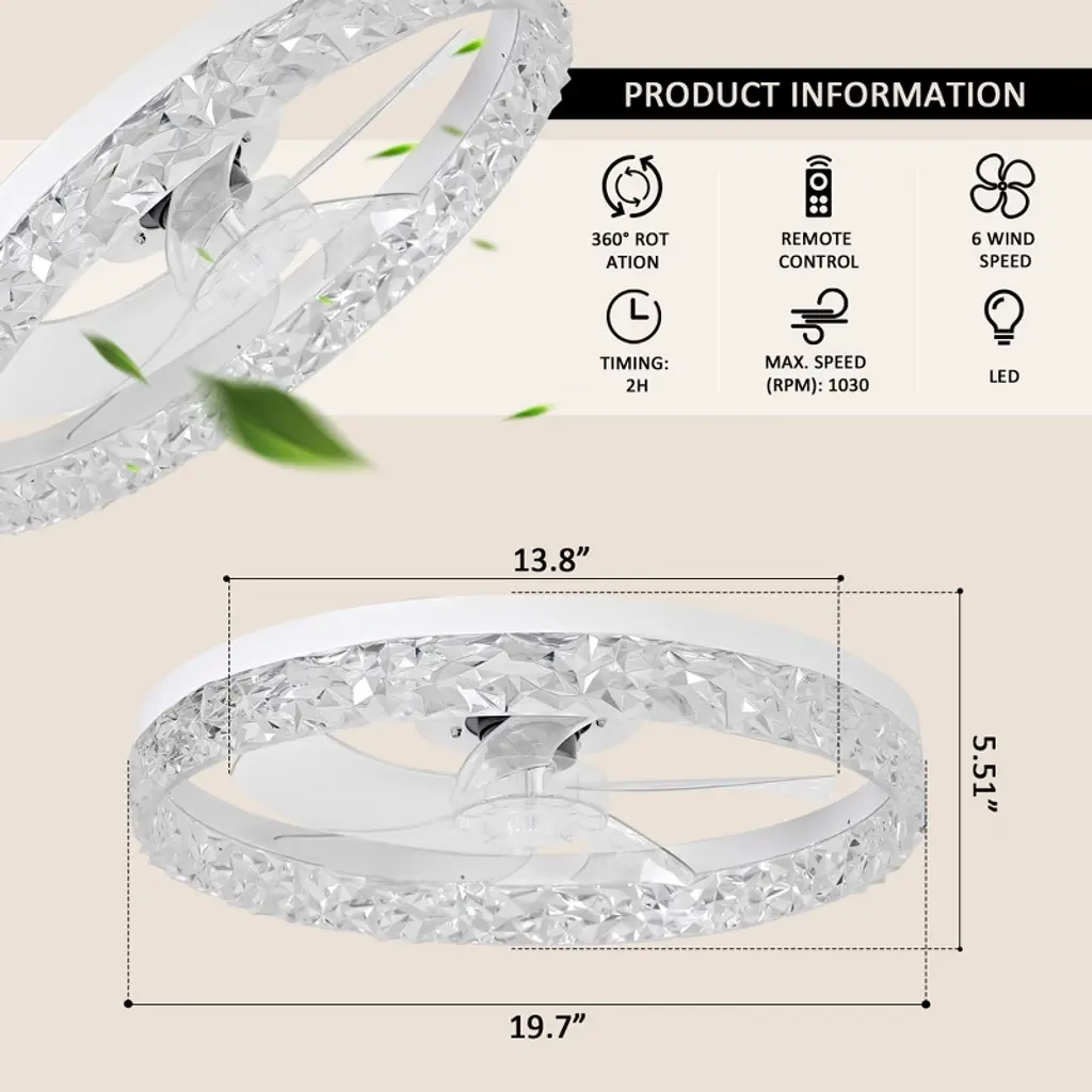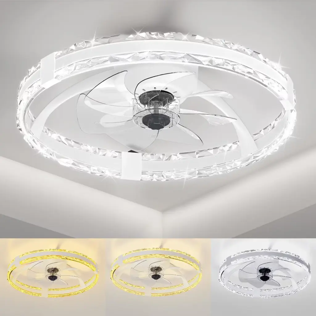 Dakaful Modern Ceiling Fan Light, Remote, Dimmable Led, 6-speed, Quiet, Flush Mount White