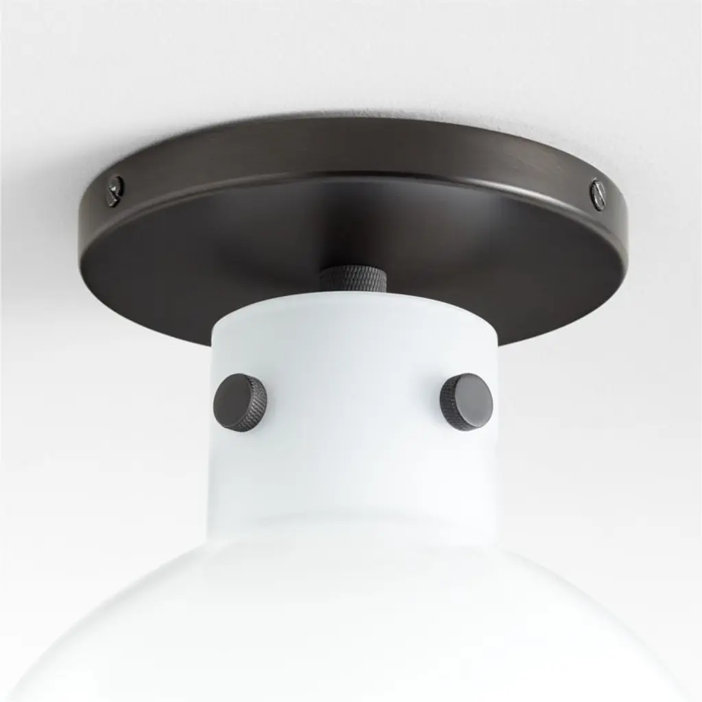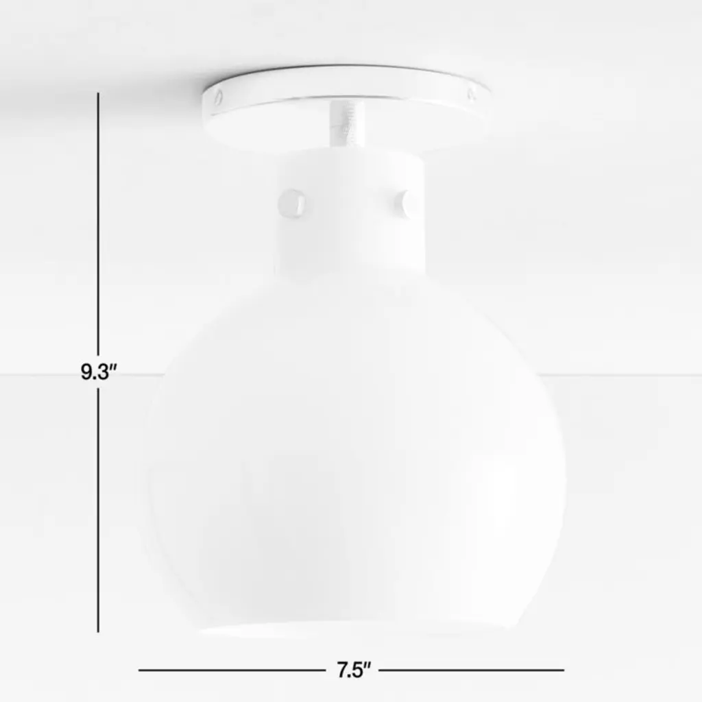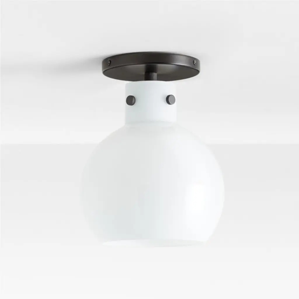 Dakota Black Flush Mount Light With Small Milk White Glass Globe 7.5"