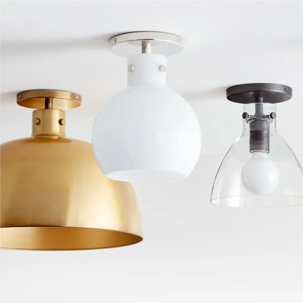Detailed with knurling, our Dakota flush mount light balances crisp modernity with subtle industrial beauty. The result is a timeless light fixture with a straightforward presence overhead. Hand-blown by talented artisans, the small white milk glass shade shapes a bulb-like globe that contrasts softly with the black base. Our exclusive mix-and-match Dakota collection offers versatile lighting options with a custom feel.