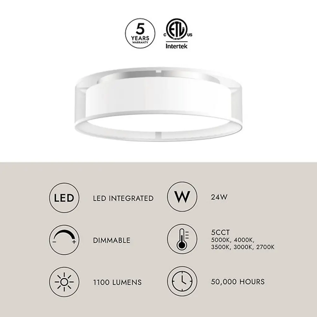 The Kuzco Lighting Dalton LED Flushmount brings interesting texture to minimal contemporary lighting. The shade is made of hand-tailored, textured fabric, the complexity in the weave coming forward when the fixture is lit. The energy efficient LED lighting disperses through the White acrylic diffuser, evenly lighting the space.